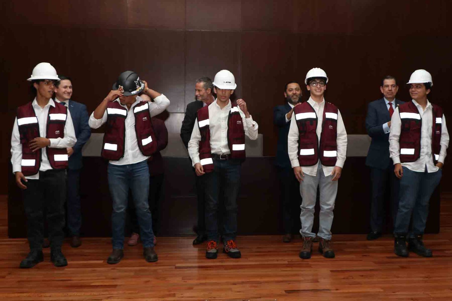 Los estudiantes de diversos semestres de Ingeniería Civil, de la Universidad Autónoma de Guadalajara (UAG), participaron en la primera Imposición de Chalecos y Cascos de Obra, una ceremonia que compromete a los jóvenes con los grandes valores de esta profesión como la calidad, seguridad, ética y el progreso.