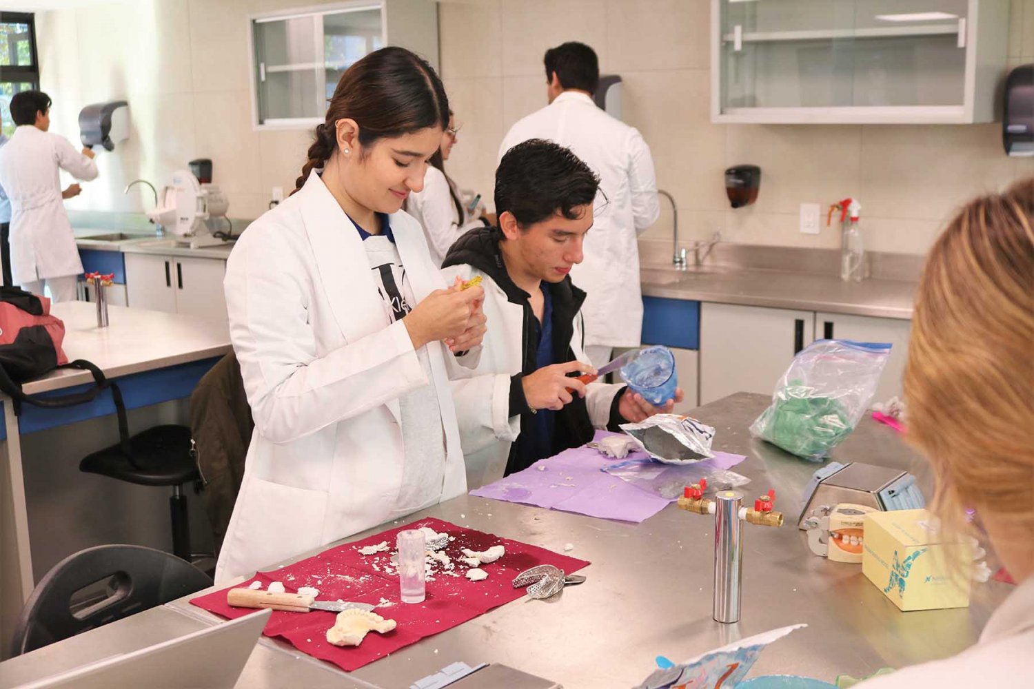 En este laboratorio también se realizan prácticas de áreas básicas odontológicas como son la anatomía dental y el manejo de materiales dentales.