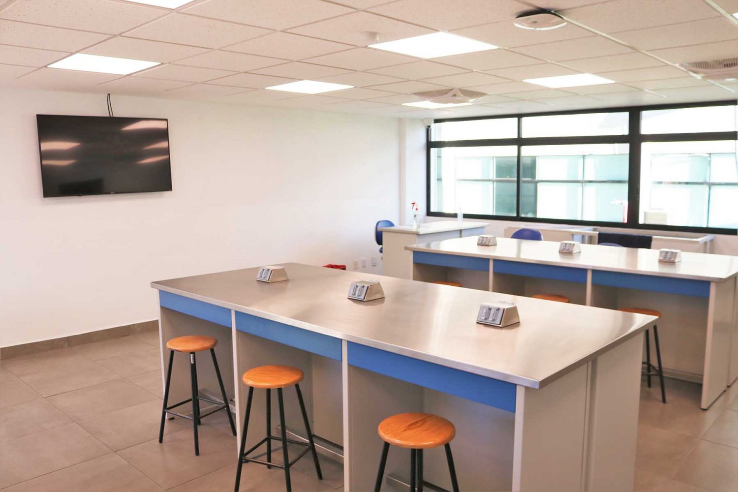 Las Aulas en el Edificio “F” se usarán para impartir clases teóricas y para las prácticas se construyó un área nueva distribuida en 3 espacios para las prácticas y simulación, ubicadas en la planta baja del Edificio “E” conformadas de la siguiente manera: