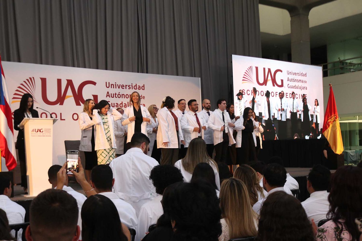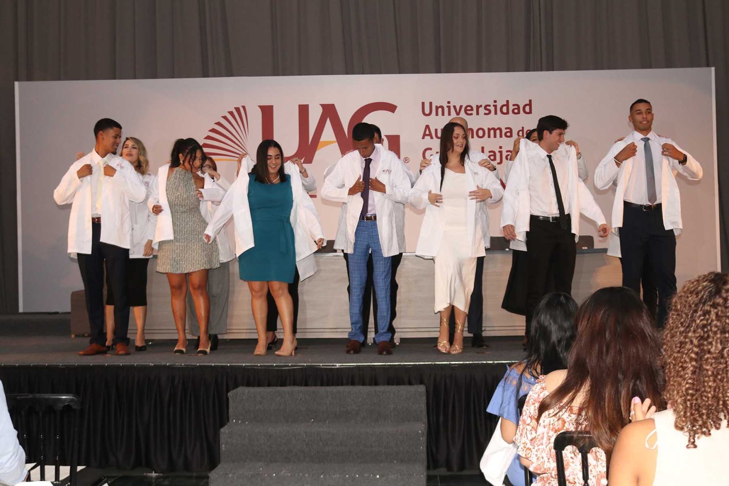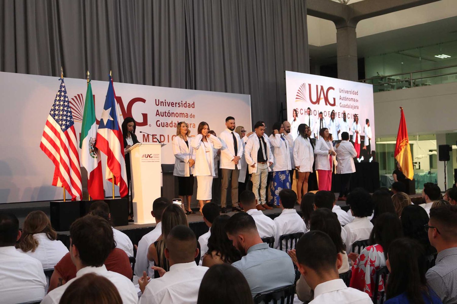 En esta ocasión, la UAG le dio la bienvenida a los nuevos estudiantes que se incorporan al Programa Internacional de Medicina (PIM) y se les impuso su primera bata blanca, la cual simboliza el compromiso con la profesión médica y su inicio como médicos en formación.