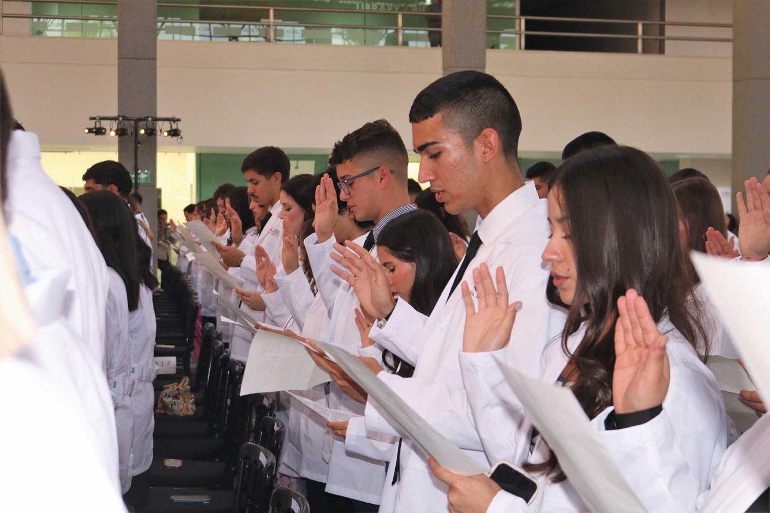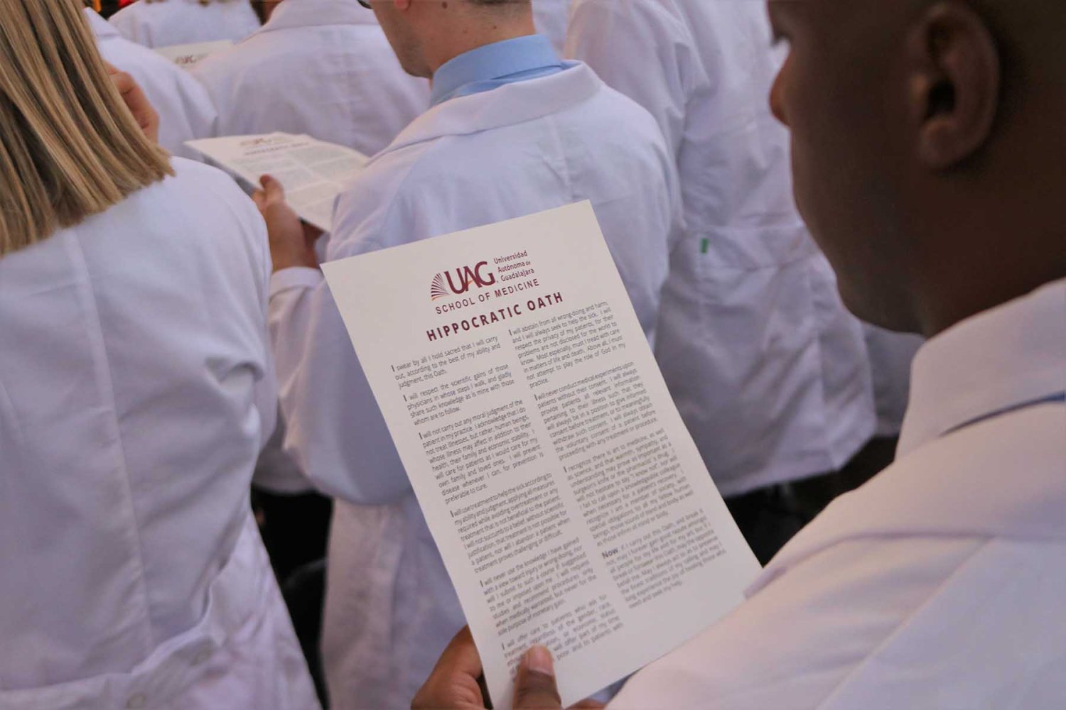La ceremonia se realizó en el Patio del Campus Internacional de la Autónoma, donde realizaron el tradicional Juramento Hipocrático, otro símbolo de la labor médica, en la cual los estudiantes se comprometieron a llevar con ética su profesión.