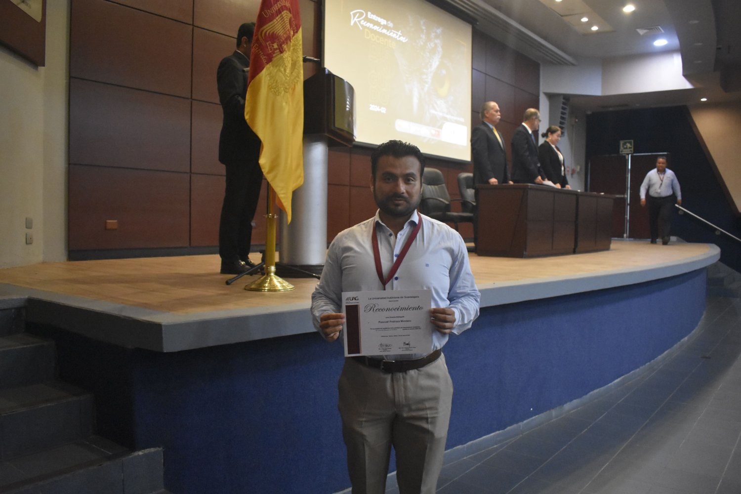 Uno de los momentos más significativos de la jornada fue el reconocimiento póstumo al Mtro. Carlos Arturo Guzmán Rivero, docente ejemplar cuya entrega y calidez humana dejaron una profunda huella en la comunidad universitaria. Su legado como educador permanece vivo en cada alumno al que formó y en cada colega que lo admiró.