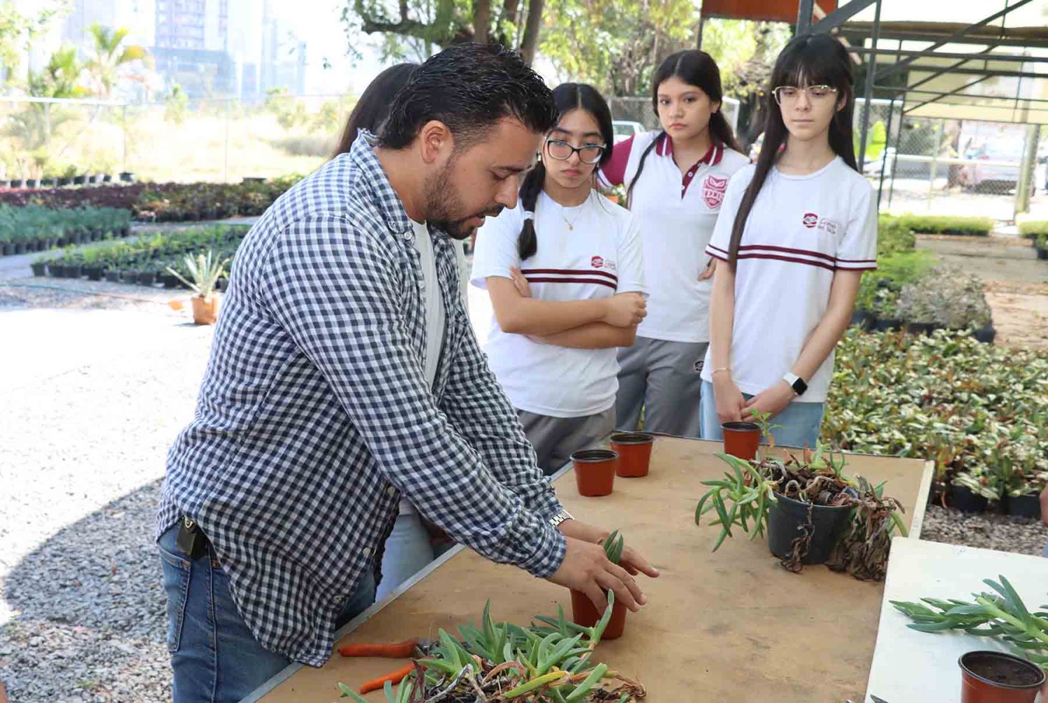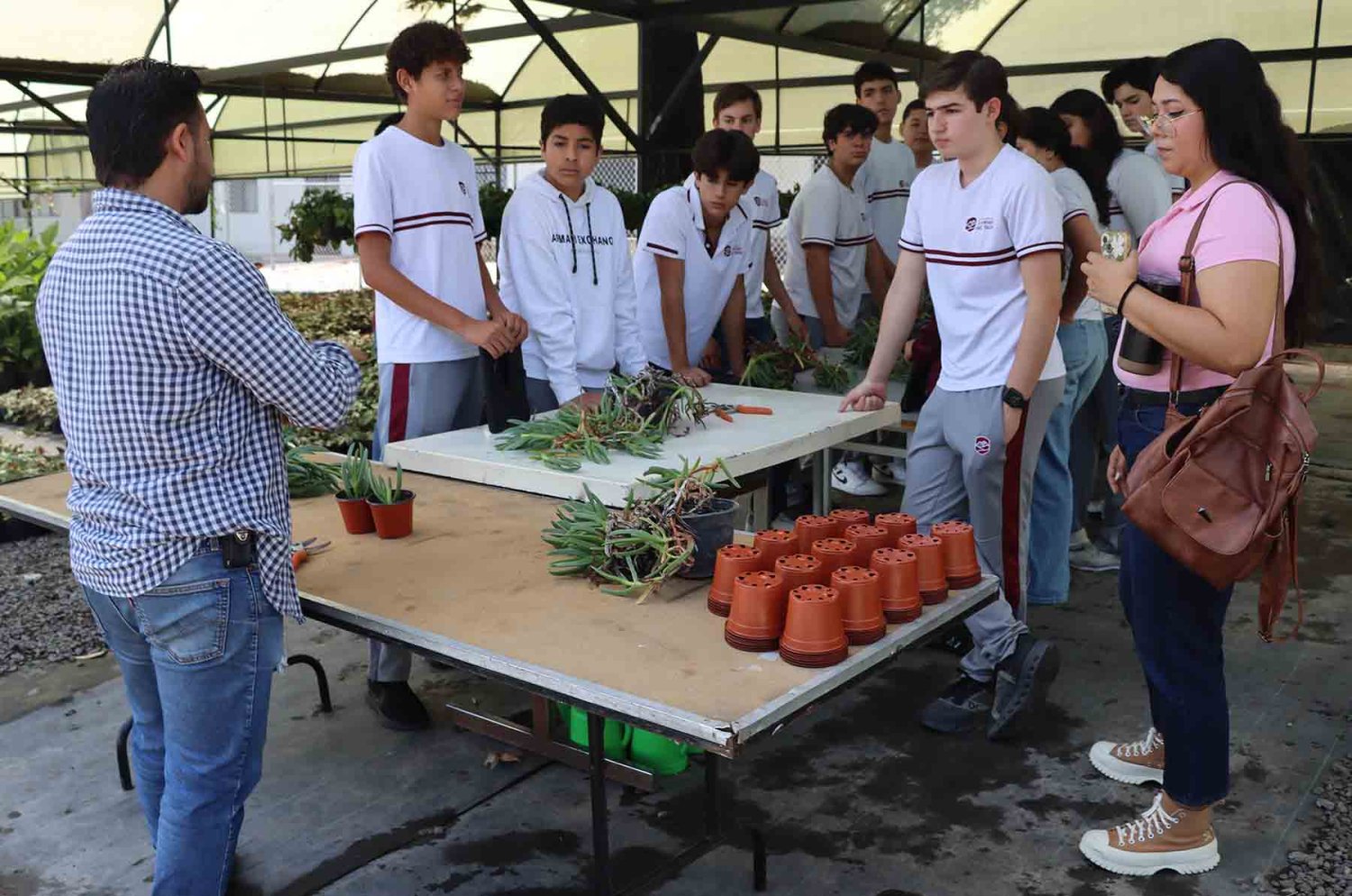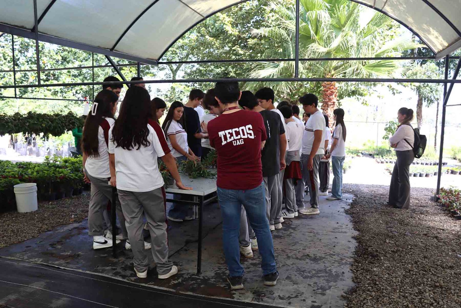 Durante su visita al Vivero de la UAG, los alumnos aprendieron sobre propagación de plantas y sostenibilidad.