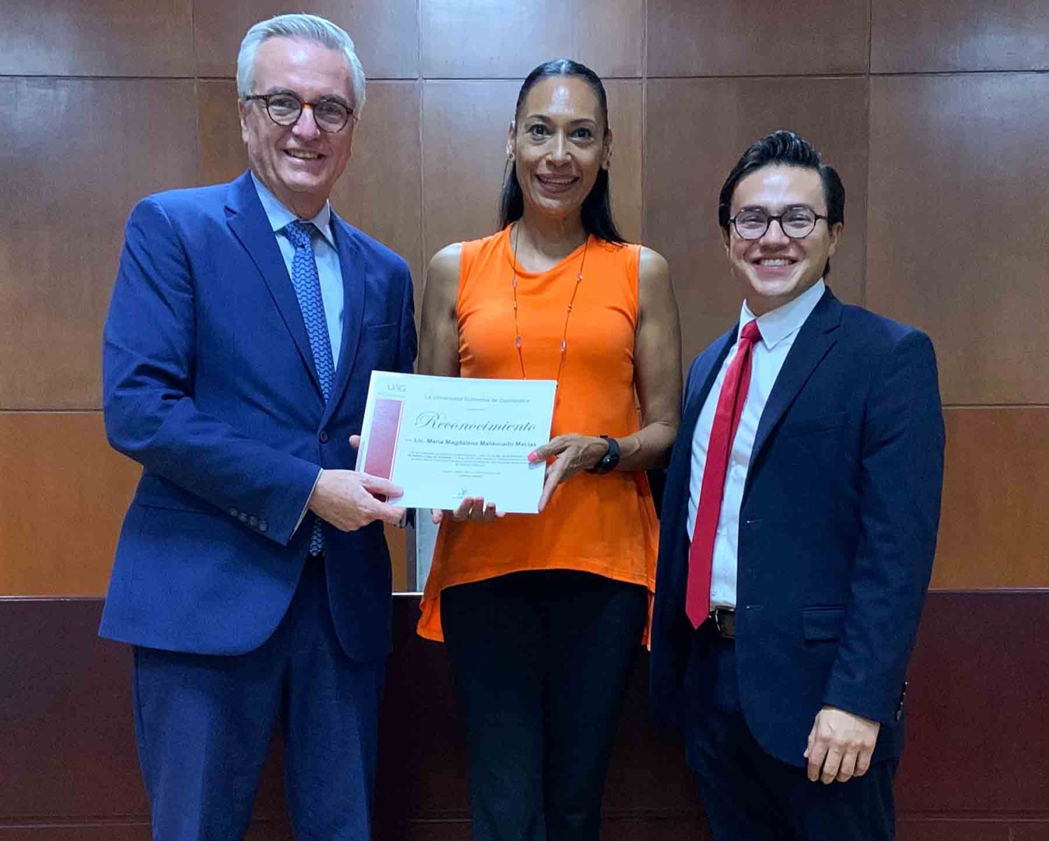 El evento culminó con la entrega de un reconocimiento especial a la Lic. María Magdalena Maldonado Macías, en honor a su dedicación y liderazgo durante estos 25 años. El Dr. Petersen Farah fue el encargado de realizar la entrega, donde destacó la invaluable contribución de Maldonado al éxito del grupo.