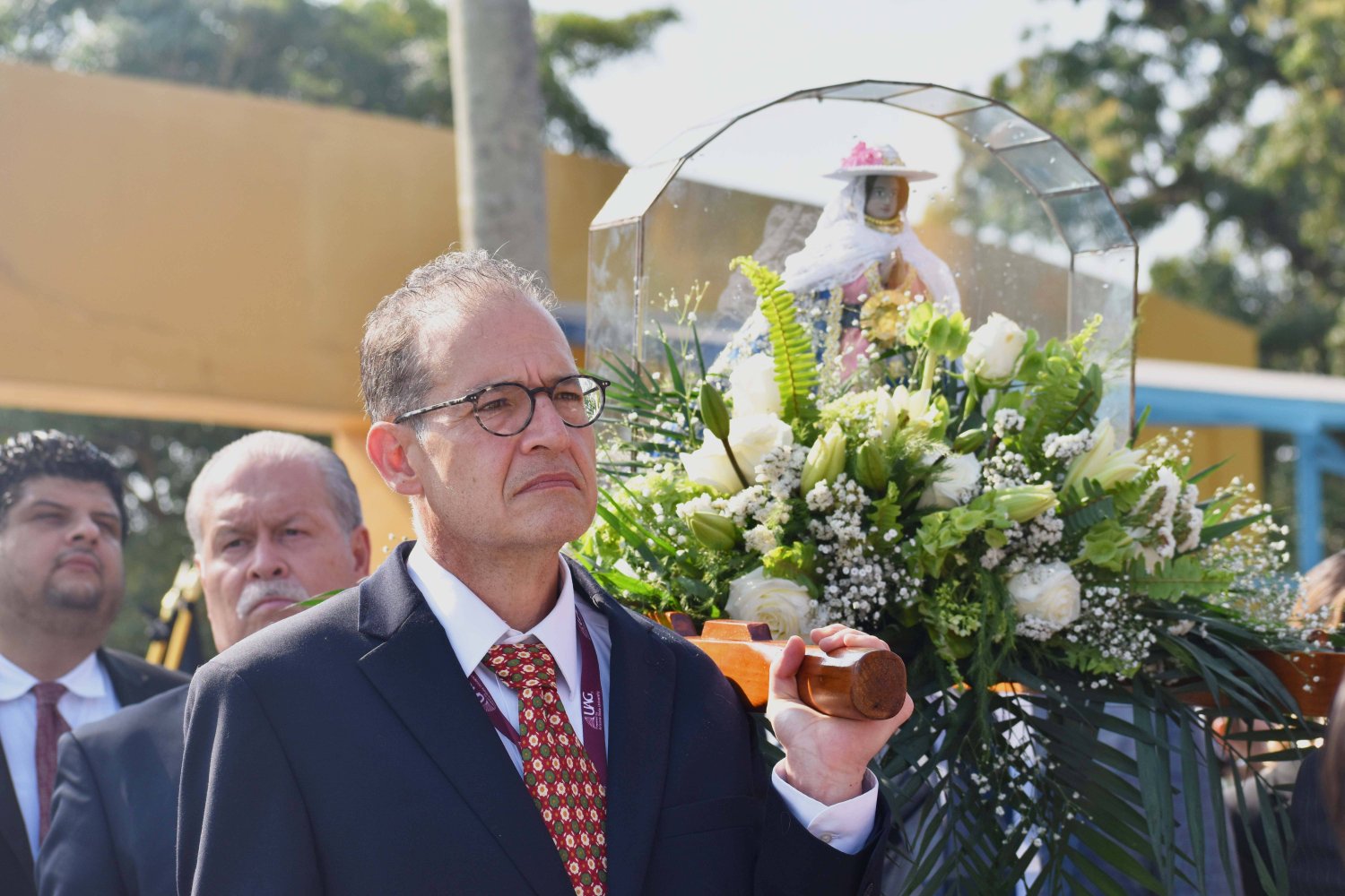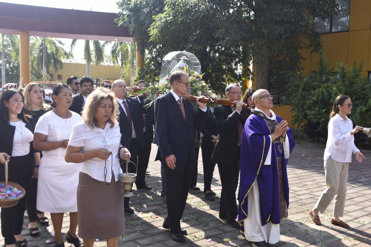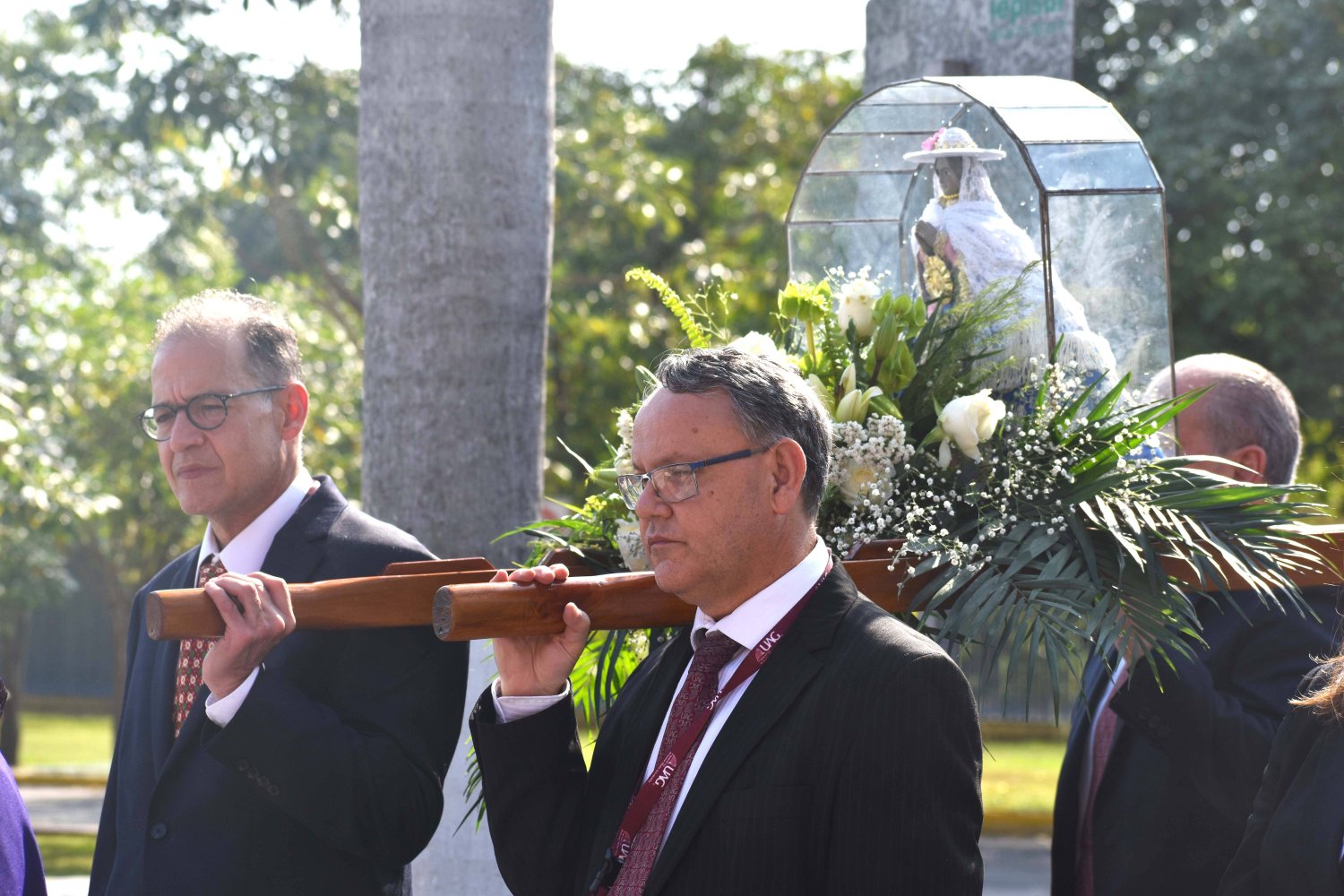 En una emotiva ceremonia, la imagen mariana fue recibida en la entrada principal por las autoridades universitarias, encabezadas por el Director del Campus, quien destacó la importancia de este acontecimiento para la vida espiritual y académica de la institución.
