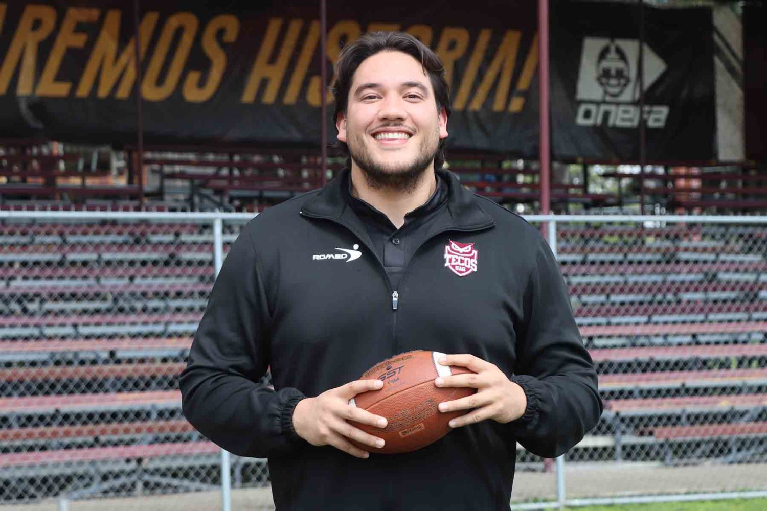 Se prepara para otro día que combinará su entrenamiento como jugador de fútbol americano en Liga Mayor ONEFA con su formación como psicólogo.
