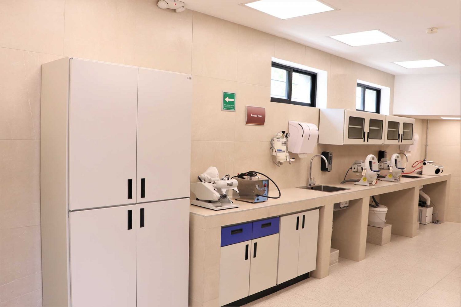 El Laboratorio cuenta con 27 cubículos para diversas actividades, con objetos como lupas, piezas de mano. Así pues, diversas áreas para construir yesos, lavado de manos, diseño de modelos entre otras piezas.