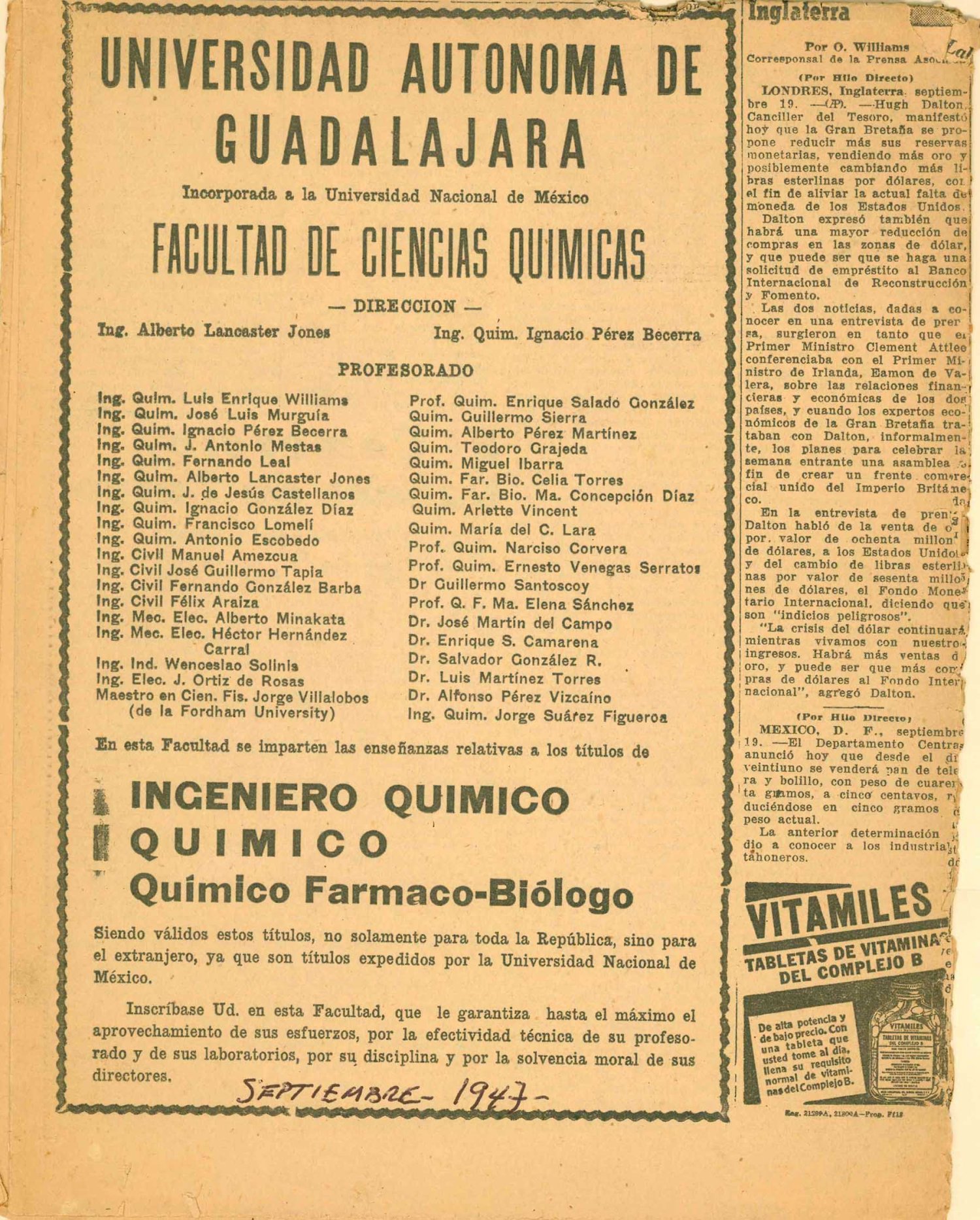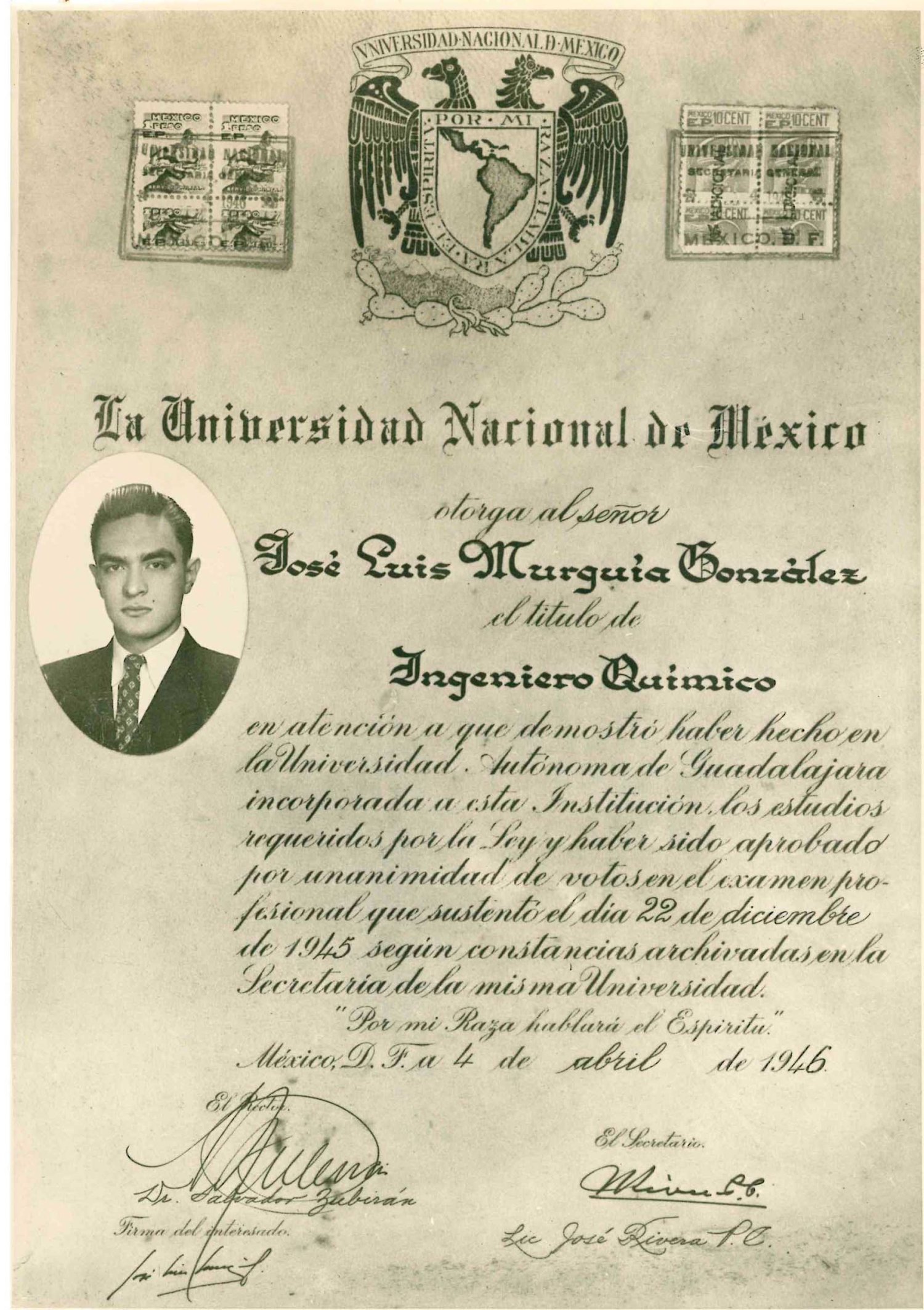 “Yo inicialmente entré a la carrera de Ingeniero Civil, estaba en una finca frente al Templo Jesús María por la calle Morelos y estando ahí el Director de la Facultad de Ciencias Químicas se acercó con mi papá y le dijo: `dígale a su hijo que mejor estudie Ingeniería Química, porque va a ser la profesión del futuro´. Había muchas clases en común entre ambas ingenierías y al final me gustó más la Ingeniería Química”.