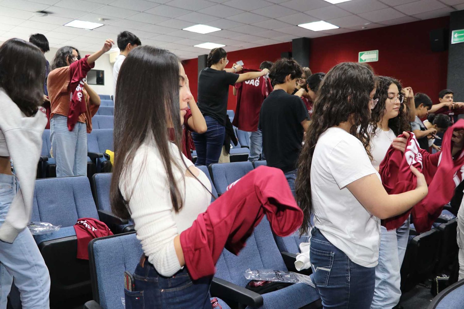 Posteriormente, los invitó a “ponerse la camiseta”, como parte inaugural de un nuevo comienzo en sus vidas y en su integración a la familia UAG, enseguida entonaron a todo pulmón la “locomotora general”, una porra que distingue a la Autónoma.