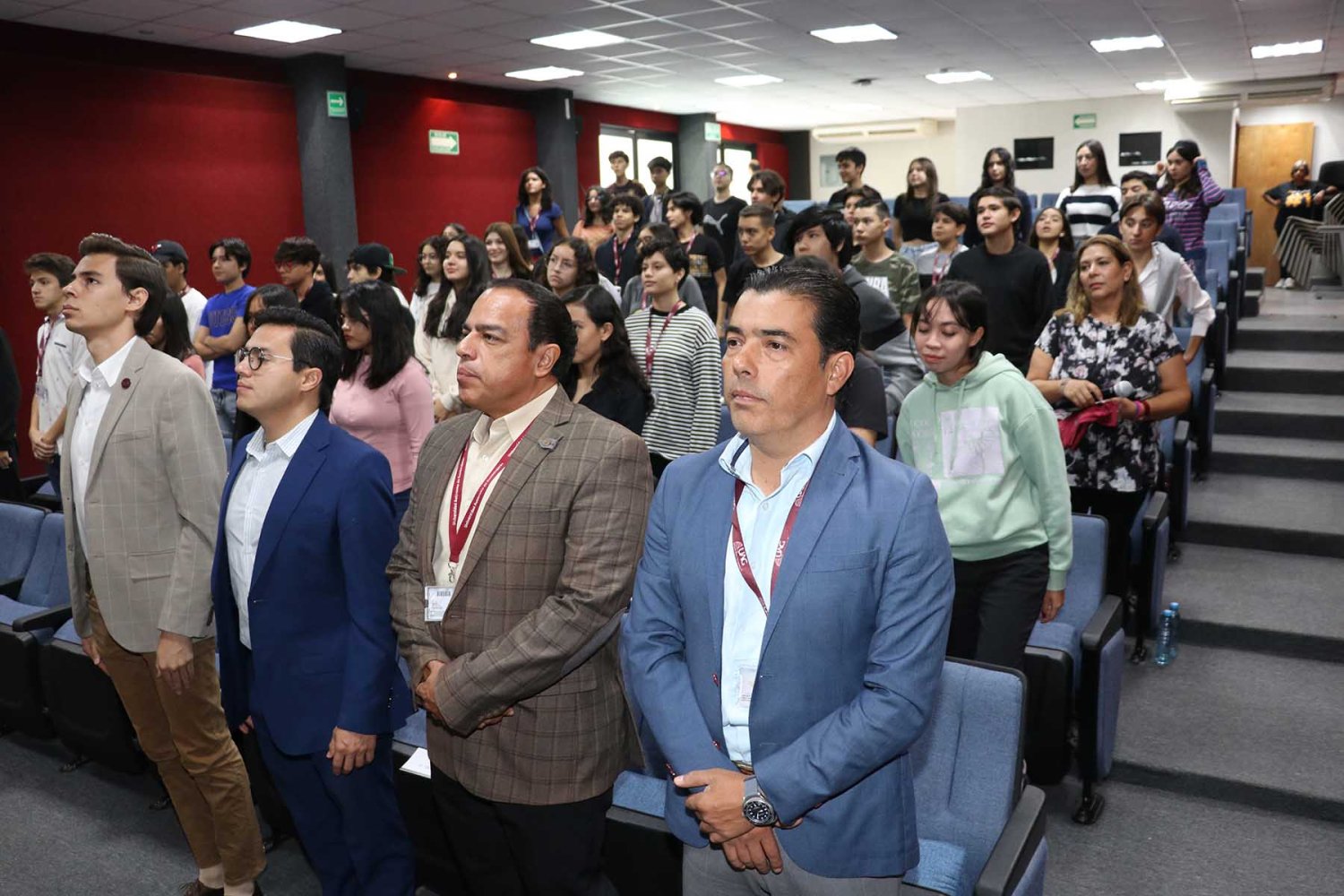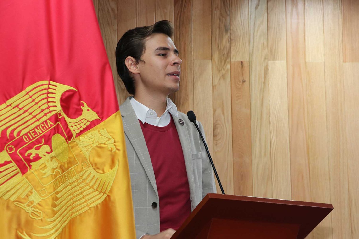 Luego, el Lic. Salvador Esparza Rodríguez, Presidente de la Federación de Estudiantes de Jalisco (FEJ), les platicó sobre la historia y fundación de la UAG, la cual nació gracias a un grupo de jóvenes que lucharon por la Libertad de Cátedra y Autonomía Universitaria.