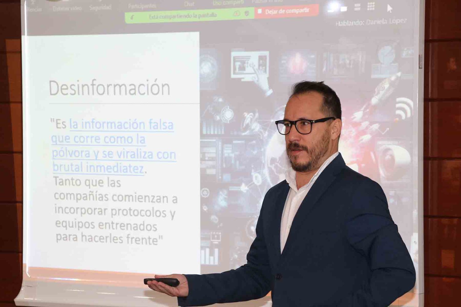 Durante la sesión a la que asistió el académico de la UAG, el periodista Julio Ríos también impartió la charla “Inteligencia Artificial en los medios: Entre la eficiencia y la desinformación”. Al final, la presidenta de la Sección Especializada de Tecnologías Disruptivas 4.0 de la Cámara de Comercio, Mariana Navarro, entregó un reconocimiento a ambos ponentes.