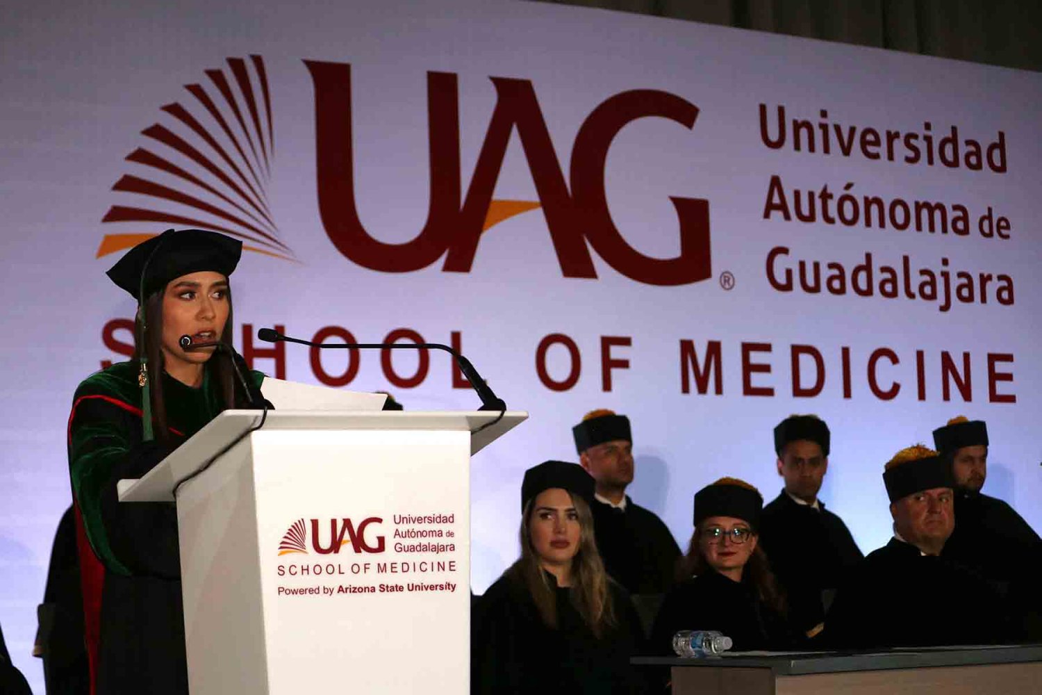 Apuntó que la UAG es la primera universidad privada de México y cuenta con 88 años de experiencia en la formación con valores, por lo que de sus aulas han salido más de 140 mil egresados exitosos, 19 mil egresados como médicos internacionales y 75 mil mexicanos.