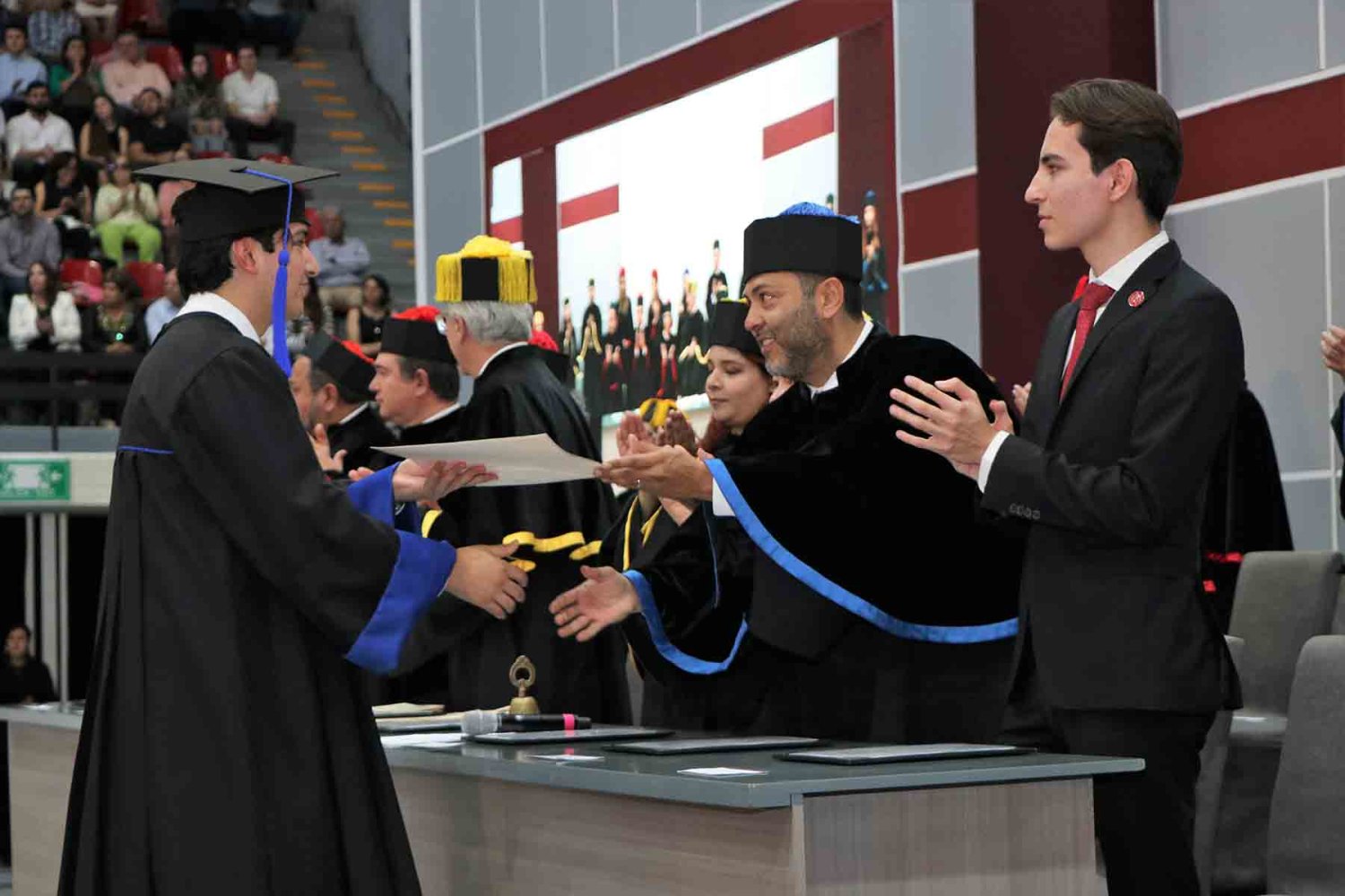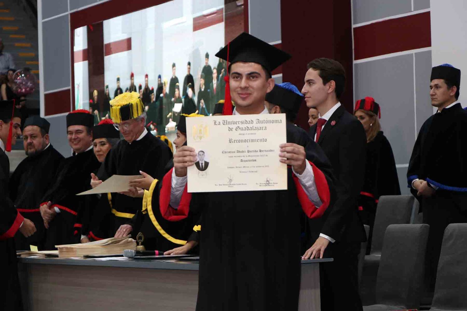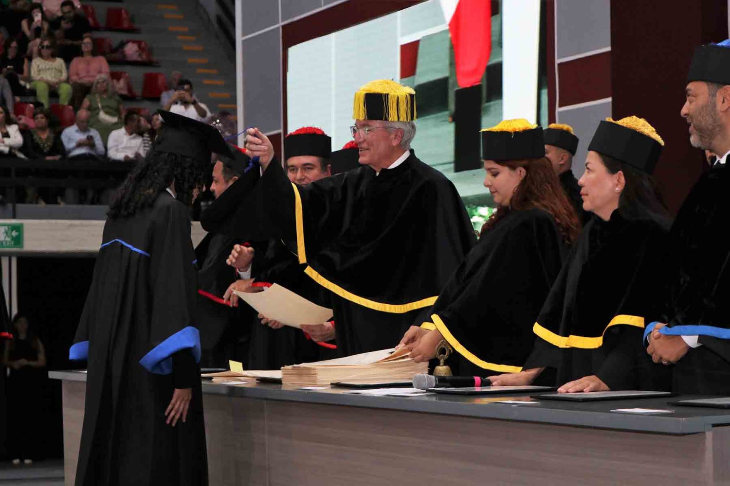 En el mensaje de autoridades y toma de protesta de los graduados, el Dr. Alfonso Petersen Farah, Vicerrector Académico y de Ciencias de la Salud, aseguró que el camino que forja líderes comprometidos es el del esfuerzo, entrega y colaboración.