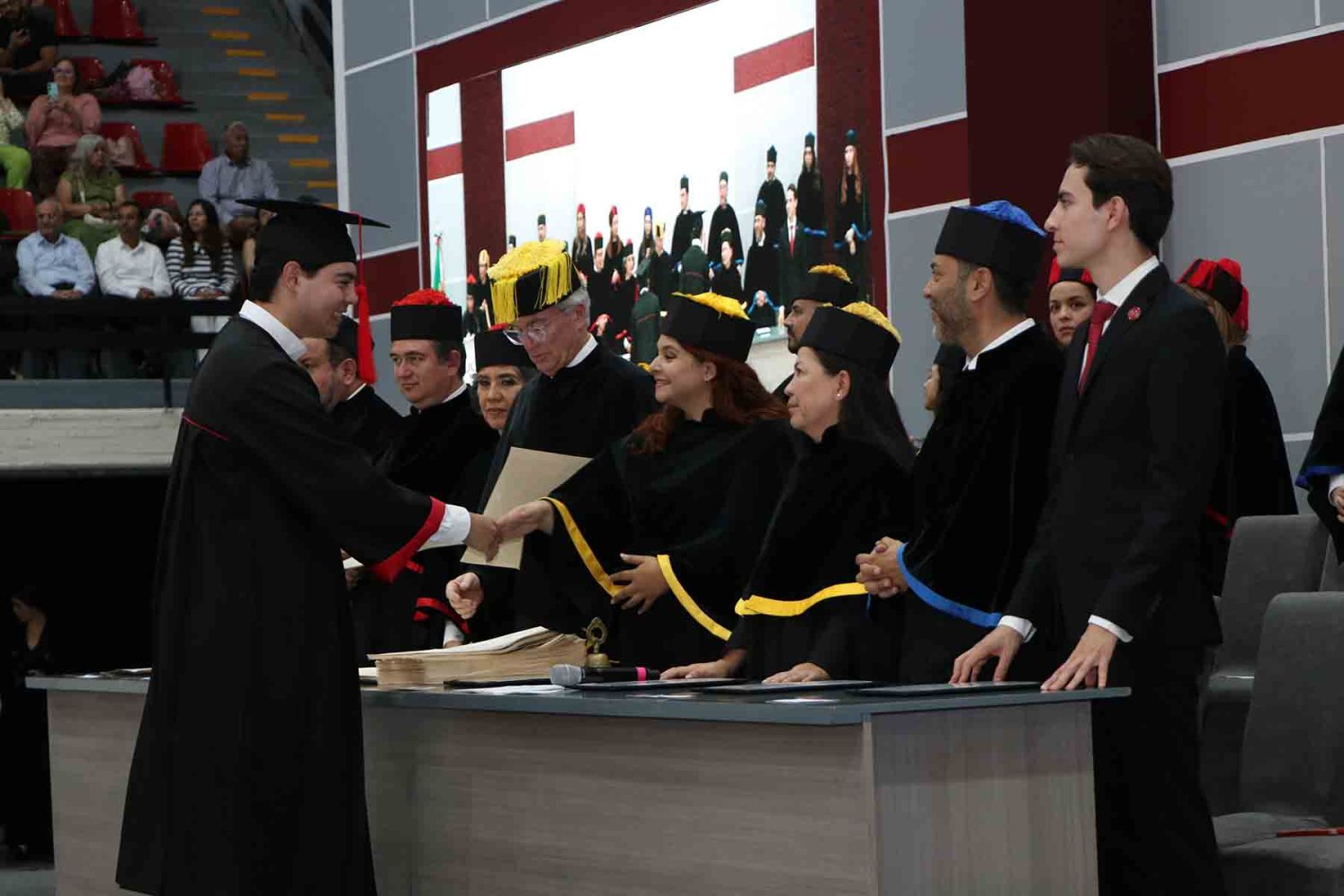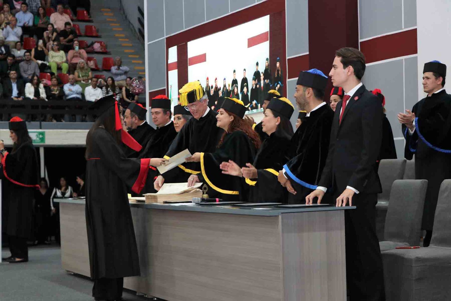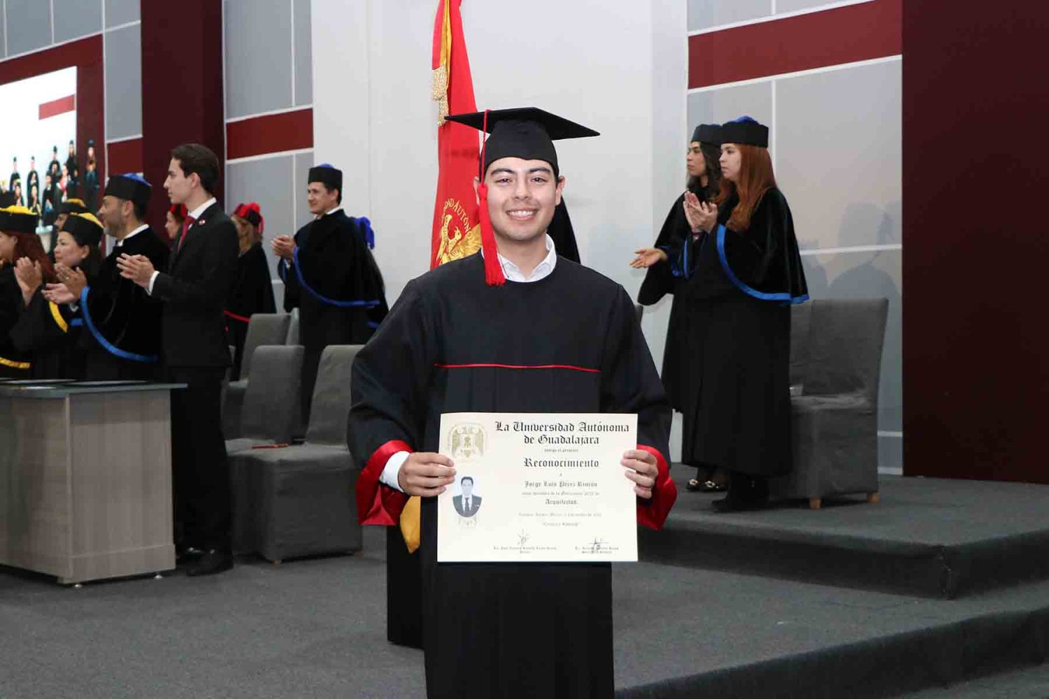 En el mensaje de autoridades y toma de protesta de los graduados, el Dr. Alfonso Petersen Farah, Vicerrector Académico y de Ciencias de la Salud, aseguró que el camino que forja líderes comprometidos es el del esfuerzo, entrega y colaboración.