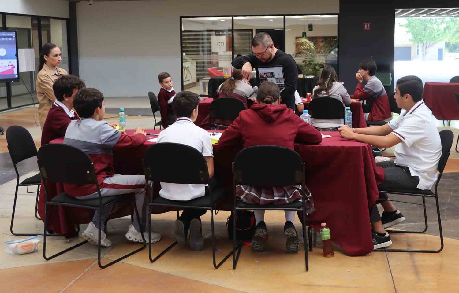 Durante la jornada, los estudiantes trabajaron en equipos aplicando herramientas de innovación, pensamiento crítico y trabajo colaborativo para resolver retos reales.