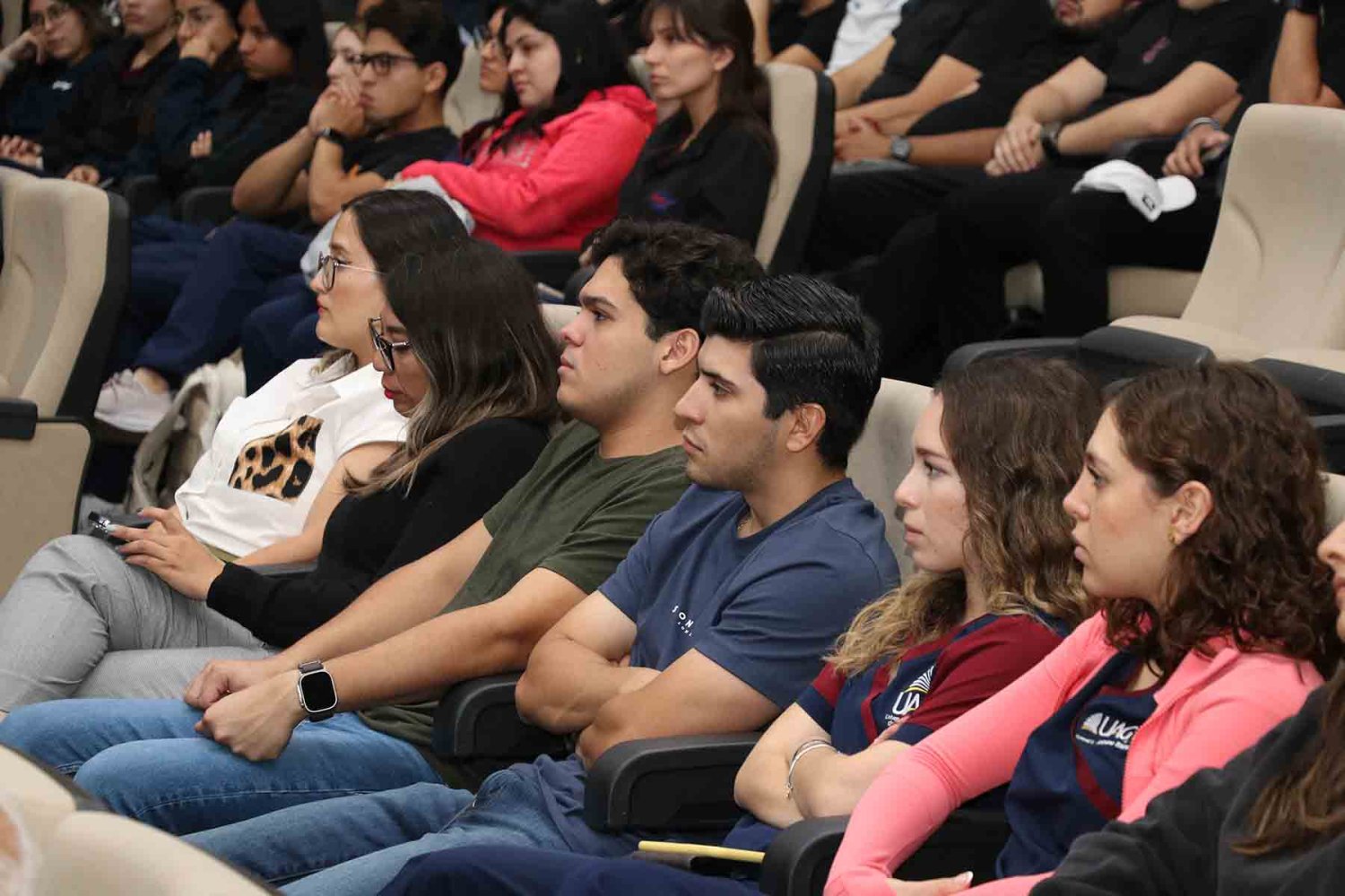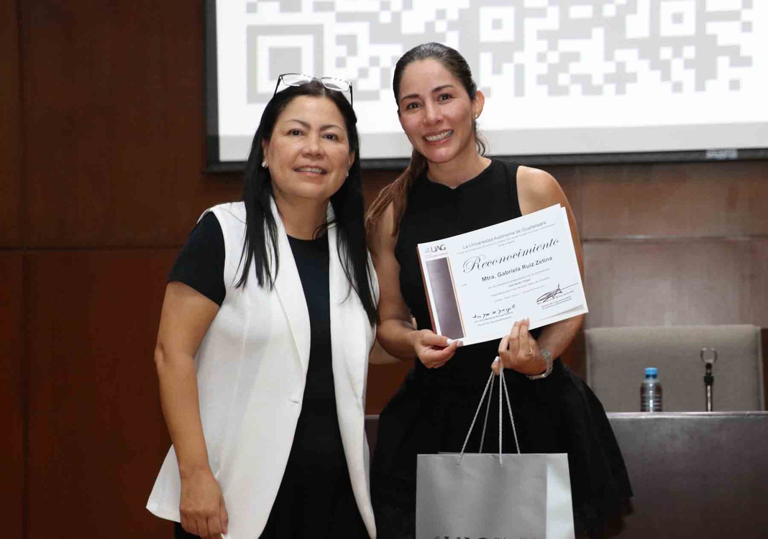 Al finalizar la conferencia, la Dra. Nora Margarita Noriega Esparza, Decano de Ciencias de la Salud, entregó un reconocimiento a Gaby Ruiz por su valiosa contribución y su esfuerzo por sensibilizar a los estudiantes de los riegos que existen al conducir.