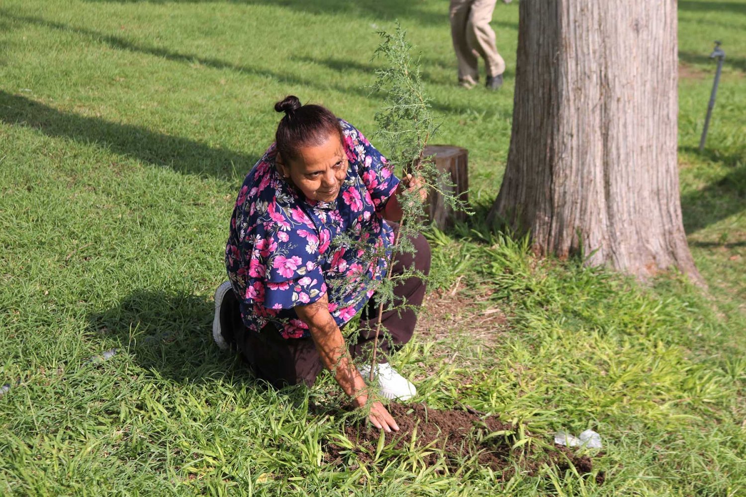 Estos árboles son cedros blancos y forma parte de una iniciativa de la Dirección de Asistencia Social como un método para acercar a los jubilados a participar en actividades de sustentabilidad y también como una manera de que convivan entre ellos.