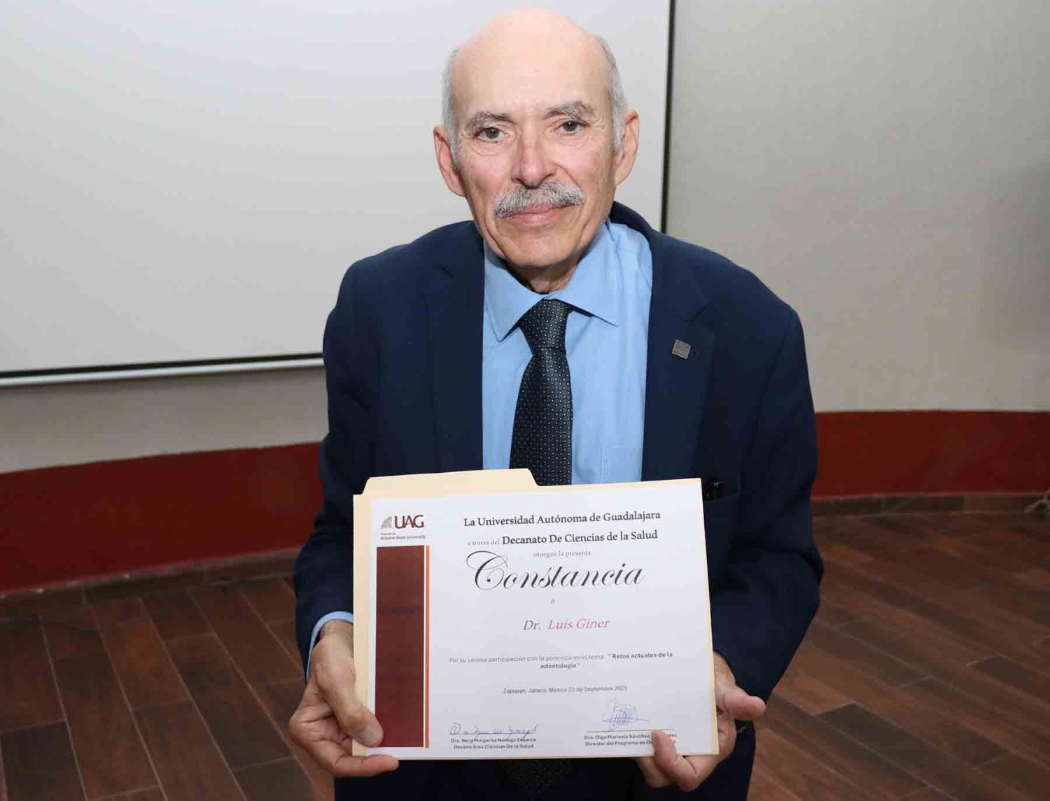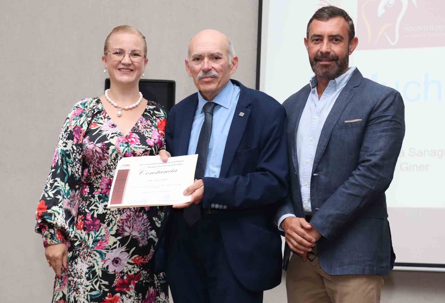 Con el objetivo de enriquecer la formación académica y profesional de sus estudiantes, la Carrera de Cirujano Dentista de la Universidad Autónoma de Guadalajara (UAG) recibió al Dr. Lluís Giner Tarrida, Catedrático y Decano de la Facultad de Odontología de la Universidad Internacional de Cataluña y Presidente de la Conferencia de Decanos, quien impartió una conferencia a alumnos, docentes y profesionales del área.