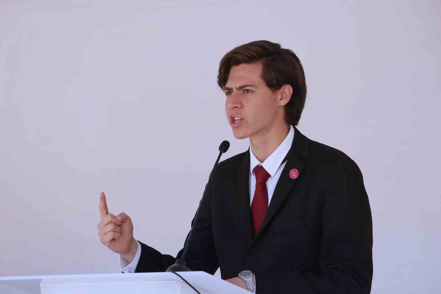 Después del mensaje de la autoridad universitaria, el miembro del Comité Adjunto de la FEJ y presidente de la Sociedad de Alumnos de Odontología de la UAG, Jesus Aguirre Villalobos, manifestó la urgencia de que los jóvenes sean parte de los cambios sociales del país y exhortó a la protección de la cultura e idiosincrasia mexicana.