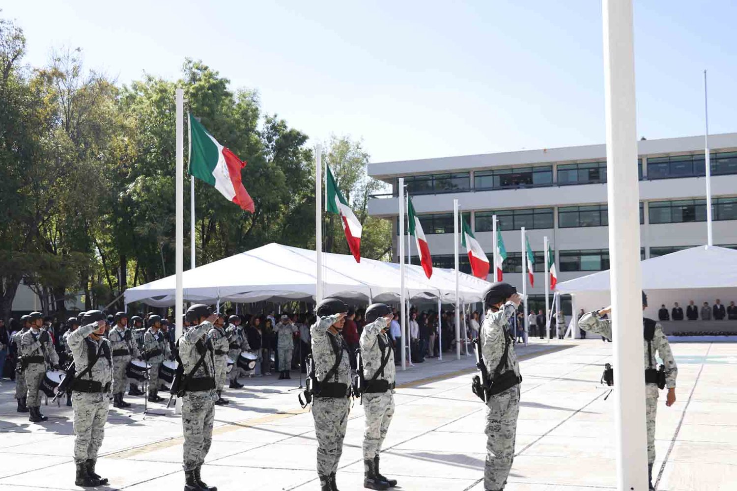 Este año, la Escolta y Banda de Guerra de la Guardia Nacional, fue la encargada de izamiento de la Bandera y la interpretación del Himno Nacional Mexicano. Por la tarde se realizó el arriamiento de la Bandera.