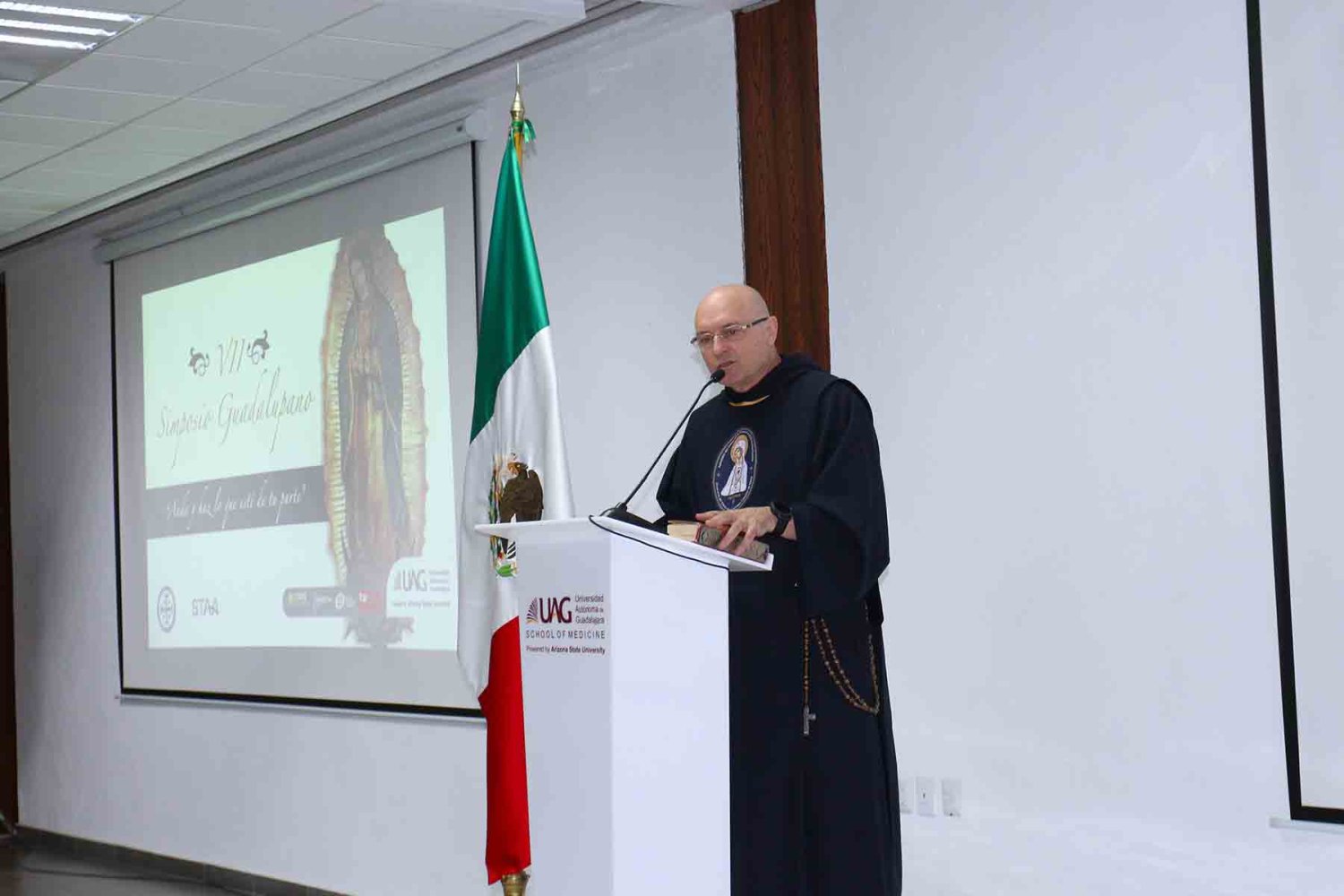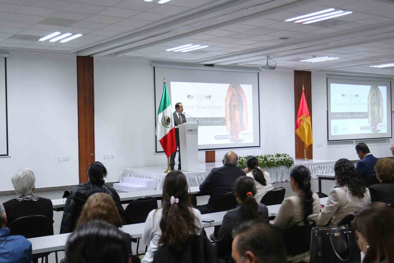 El VII Simposio Guadalupano tuvo lugar en el Campus Internacional de la UAG. Fue organizado por el Centro de Estudios Humanísticos que dirige el Dr. Ernesto Ávalos y el Sindicato de Trabajadores Académicos y Administrativos de la UAG, a cuyo frente está el Lic. Ramón Velasco Sánchez. El Rector, Lic. Antonio Leaño Reyes, estuvo presente, acompañado de otras autoridades universitarias.