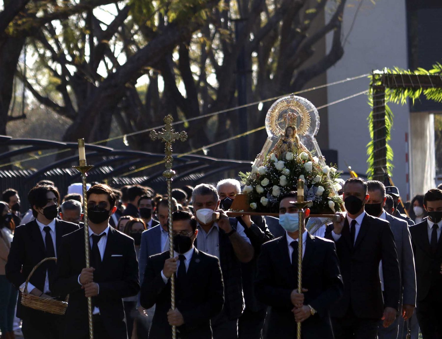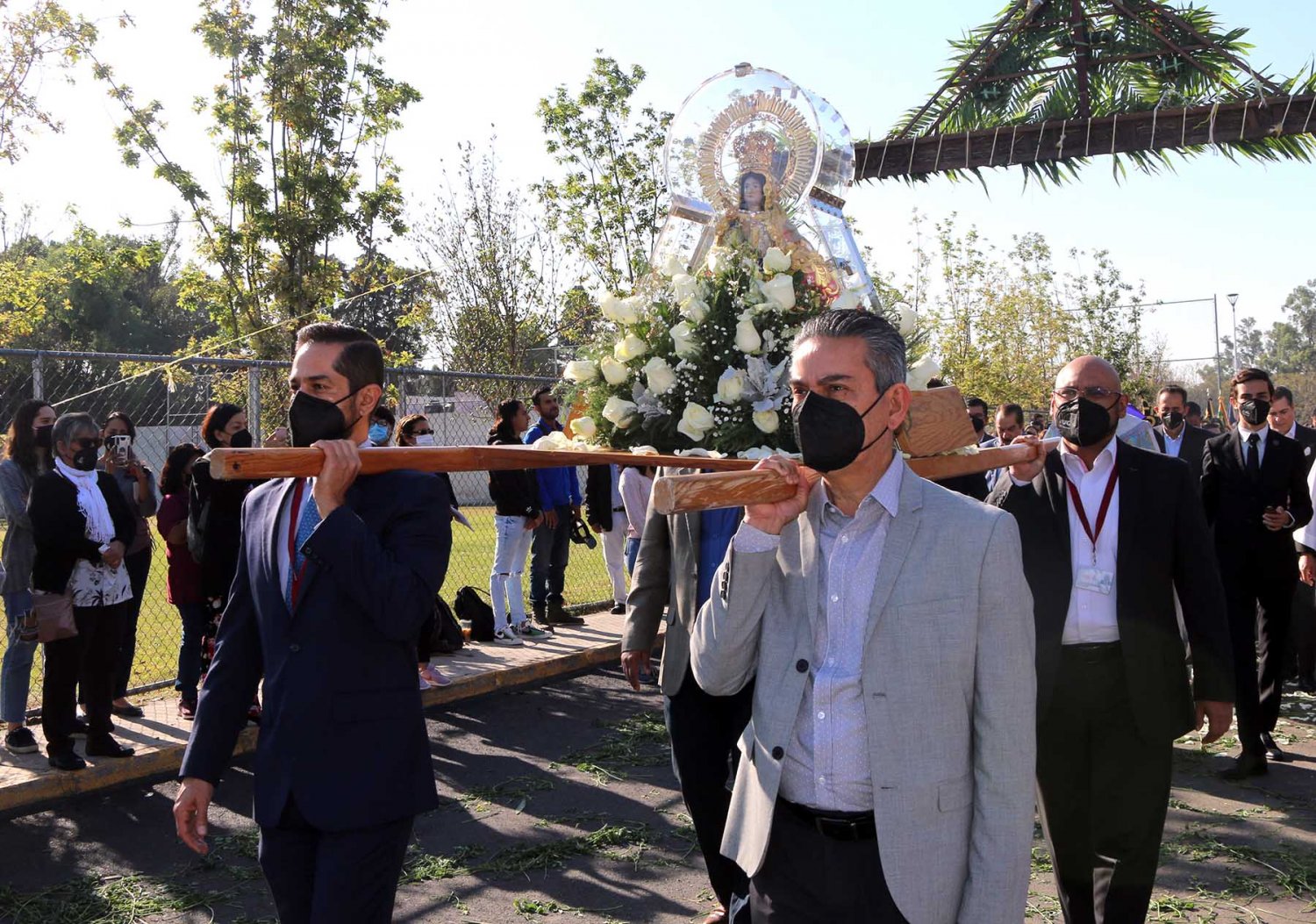Finalizado el Rosario, las autoridades universitarias acompañaron a “La Generala” al carro especial en el que es transportada, para así dar por finalizada su visita anual a UAG.