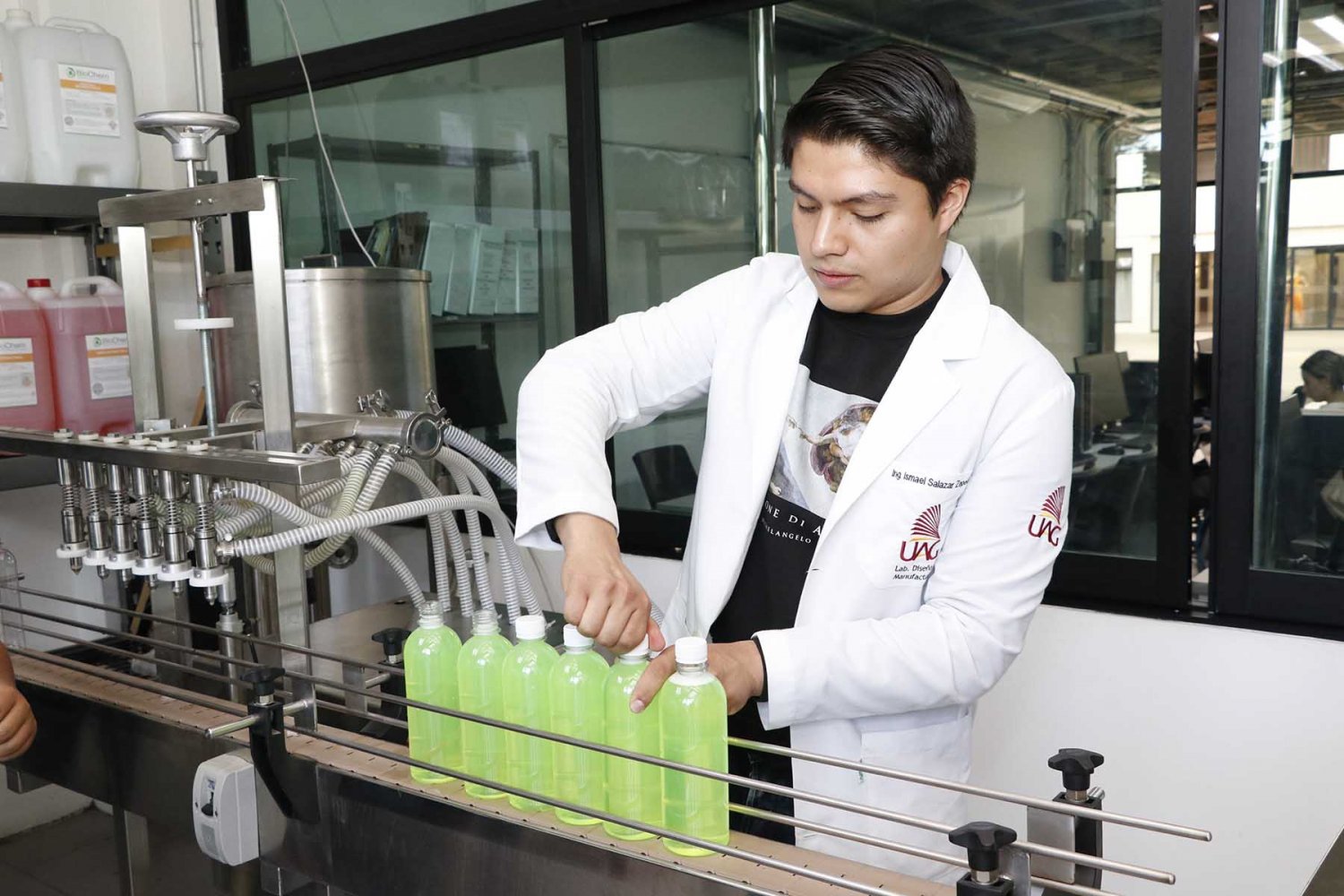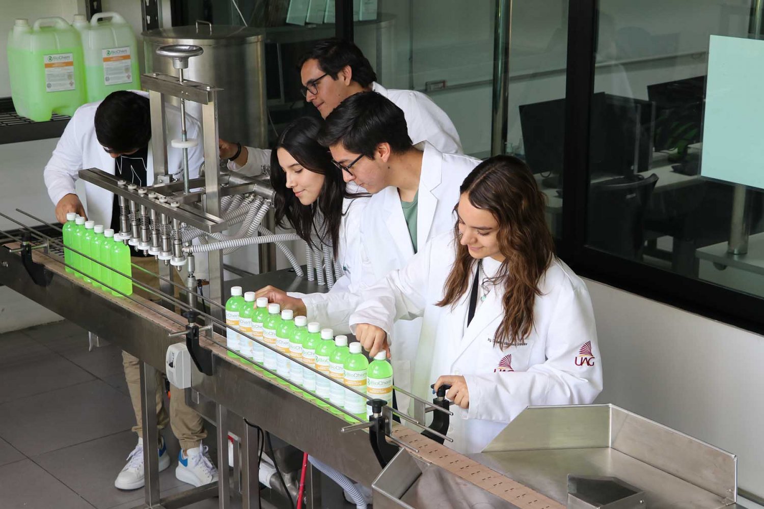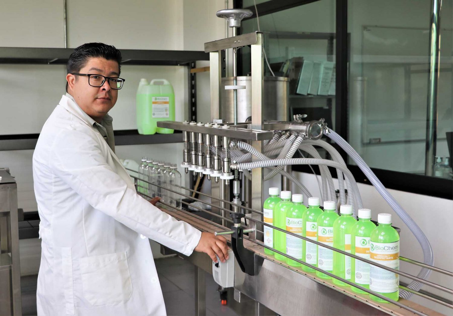 Además, el Mtro. Lara Pinal comentó que actualmente se colabora con la empresa Biochem que se dedica a la formulación de producto químico de limpieza, sanitización y otros más. Esta empresa es el proveedor de la maquinaria y socio aliado en la parte del desarrollo de las prácticas.