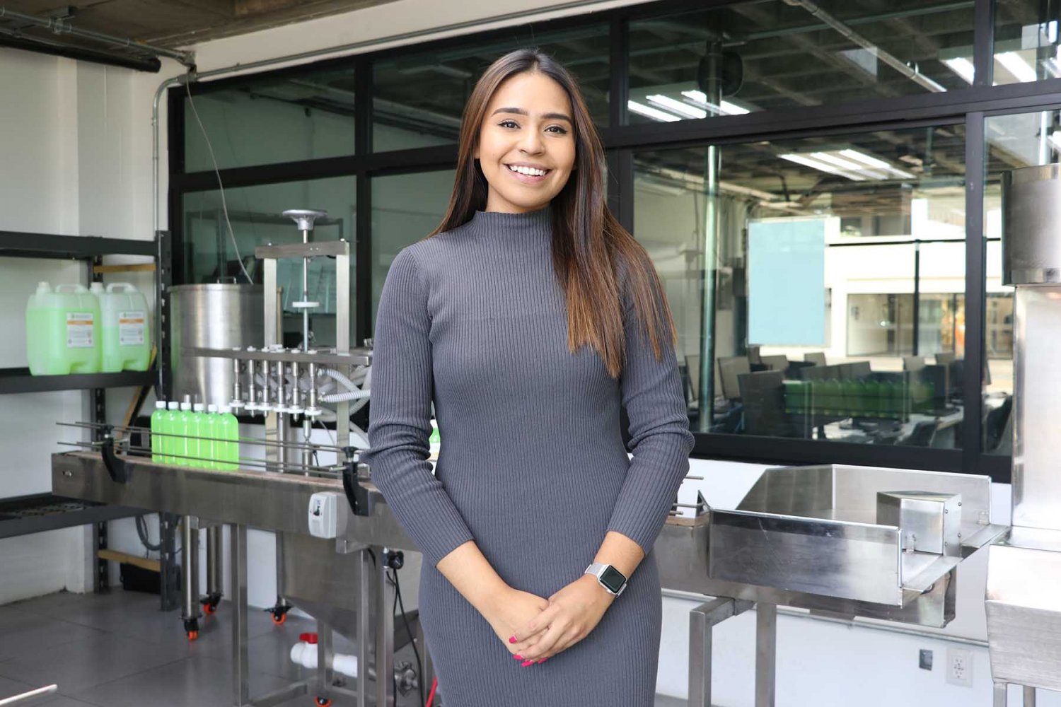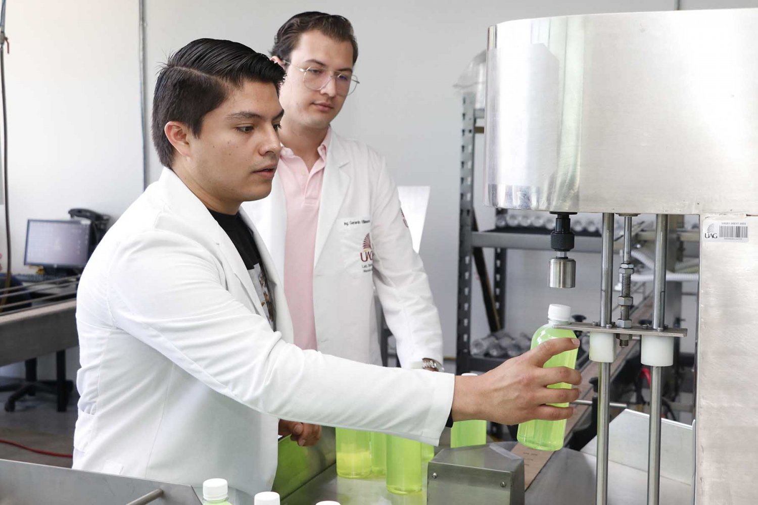 “En este laboratorio los estudiantes podrán realizar prácticas simulando los procesos que hacen dentro de una empresa; de hecho, cuenta con una máquina integrada por dos líneas de envasado industrial, aquí podrán calibrar la mecánica como en la vida real y todo lo relacionado con un entorno industrial”, detalló la Ing. Lucia Elizabeth Vega Núñez, Directora de Programas en Ingeniería Industrial en Sistemas y de Ingeniería en Innovación y Gestión Empresarial de la UAG.