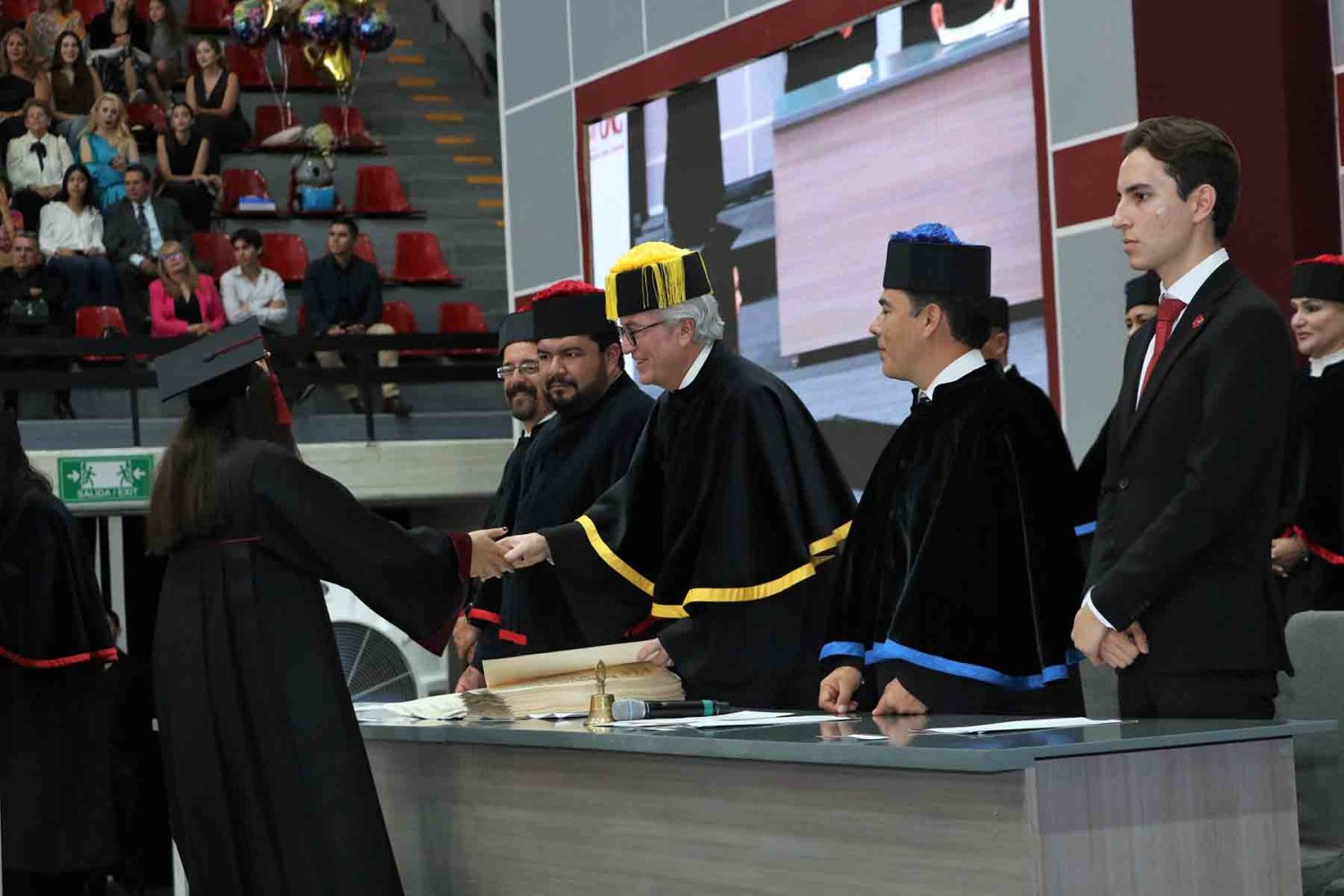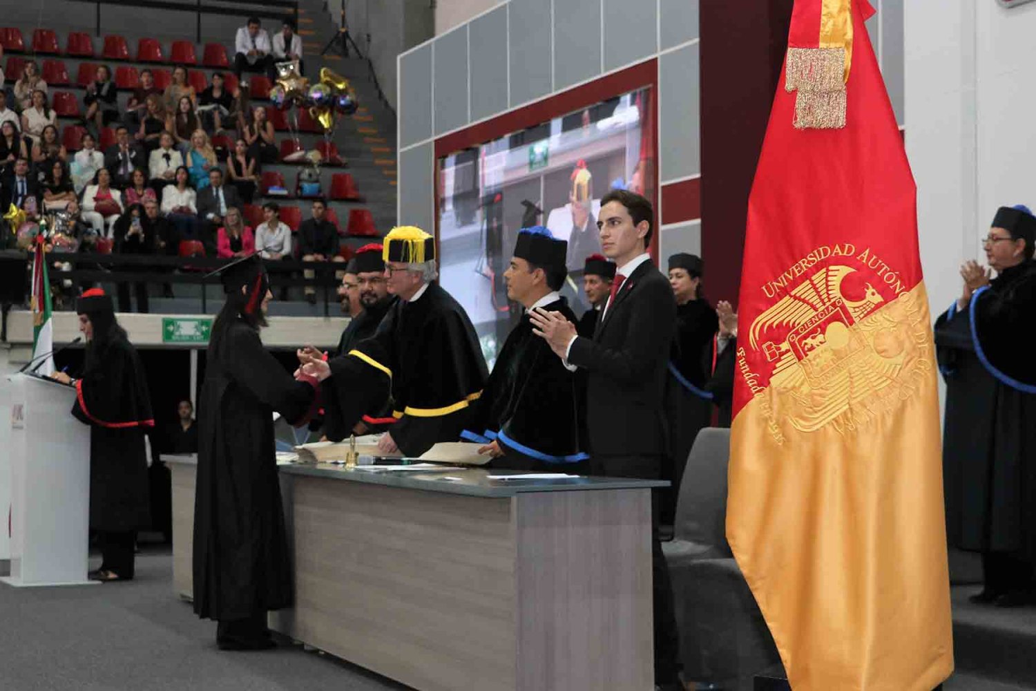 En el mismo evento se tuvo el mensaje en representación de las autoridades universitarias por parte del Dr. Alfonso Petersen Farah, Vicerrector Académico y de Ciencias de la Salud, en el que enfatizó que quienes avanzan con convicción, pasión y compromiso siempre logran sus metas.