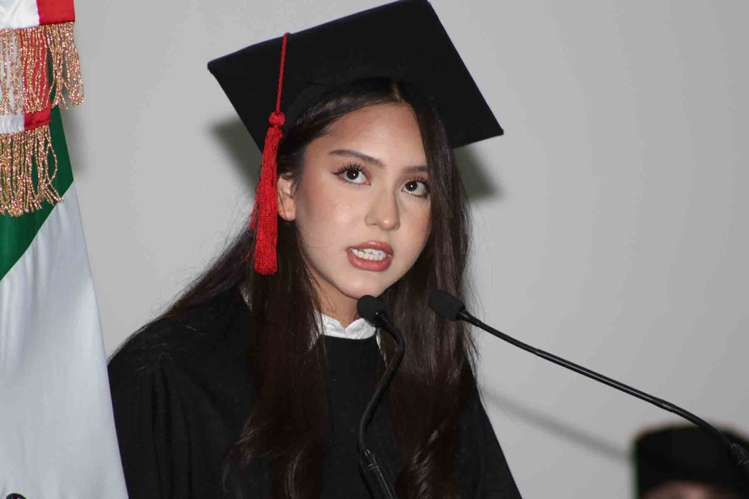 En la ceremonia también hubo palabras en representación de los Graduados por parte de Karime Araceli Núñez Rubio y de Fátima Itzel Magaña.