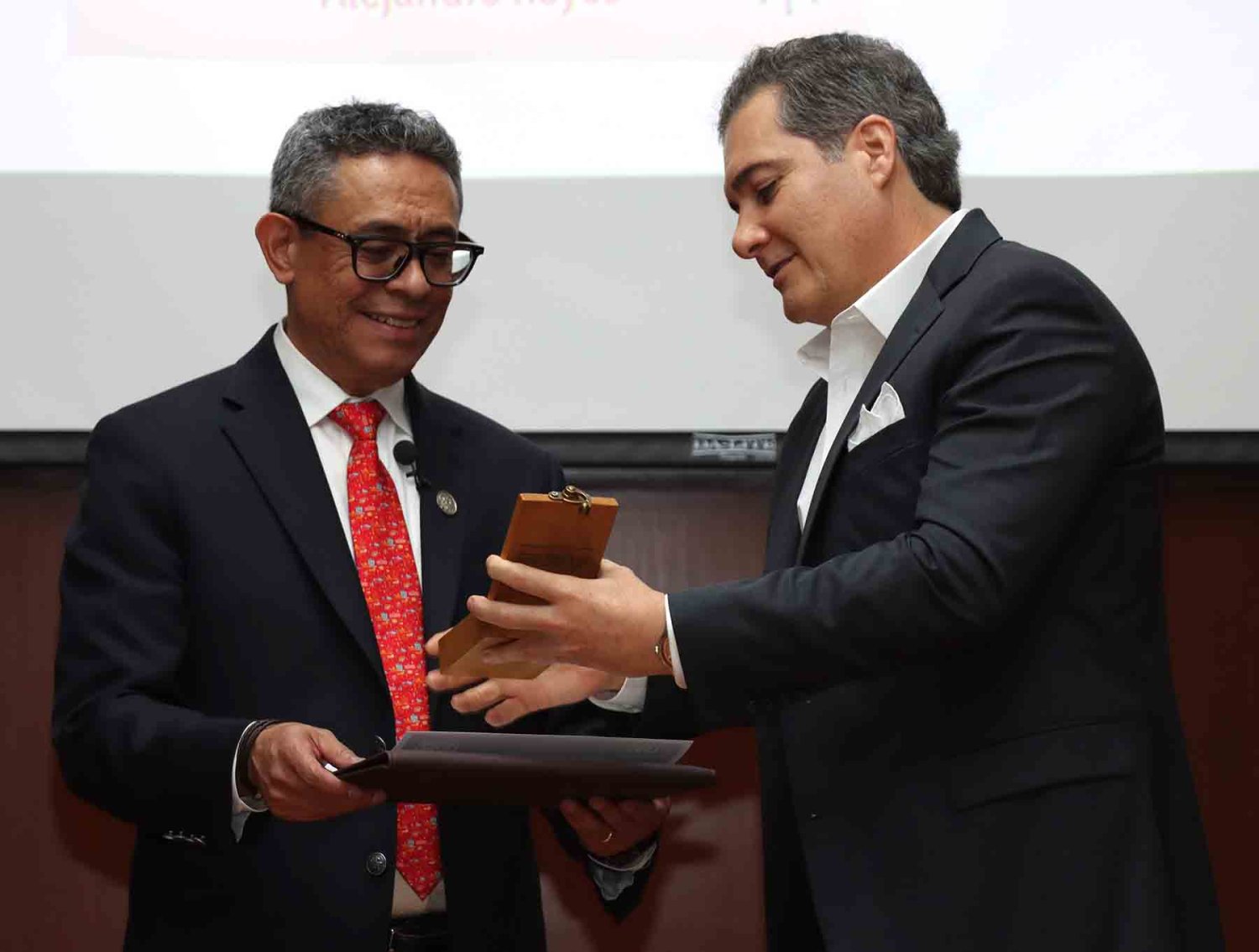 Al finalizar la conferencia, el Rector y el Vicerrector General entregaron al expositor un reconocimiento y un obsequio de la institución.