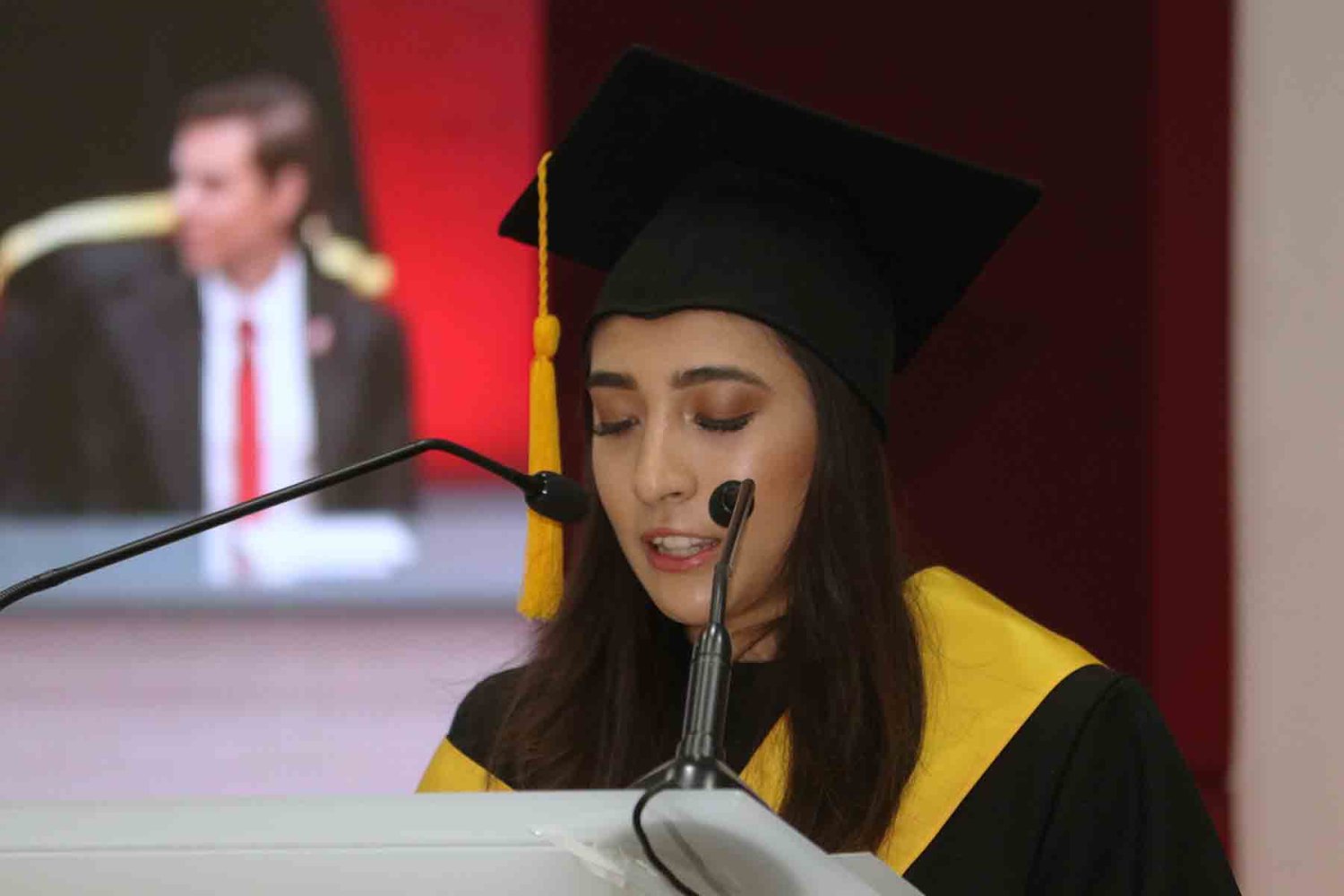 Mientras que, en representación de los alumnos que se graduaron, compartieron mensajes la Dra. Azul Hernández Atilano, Dra. Miriam Castellanos y Dra. Aida Natzumi Rodríguez Tanaka, en cada graduación, respectivamente.