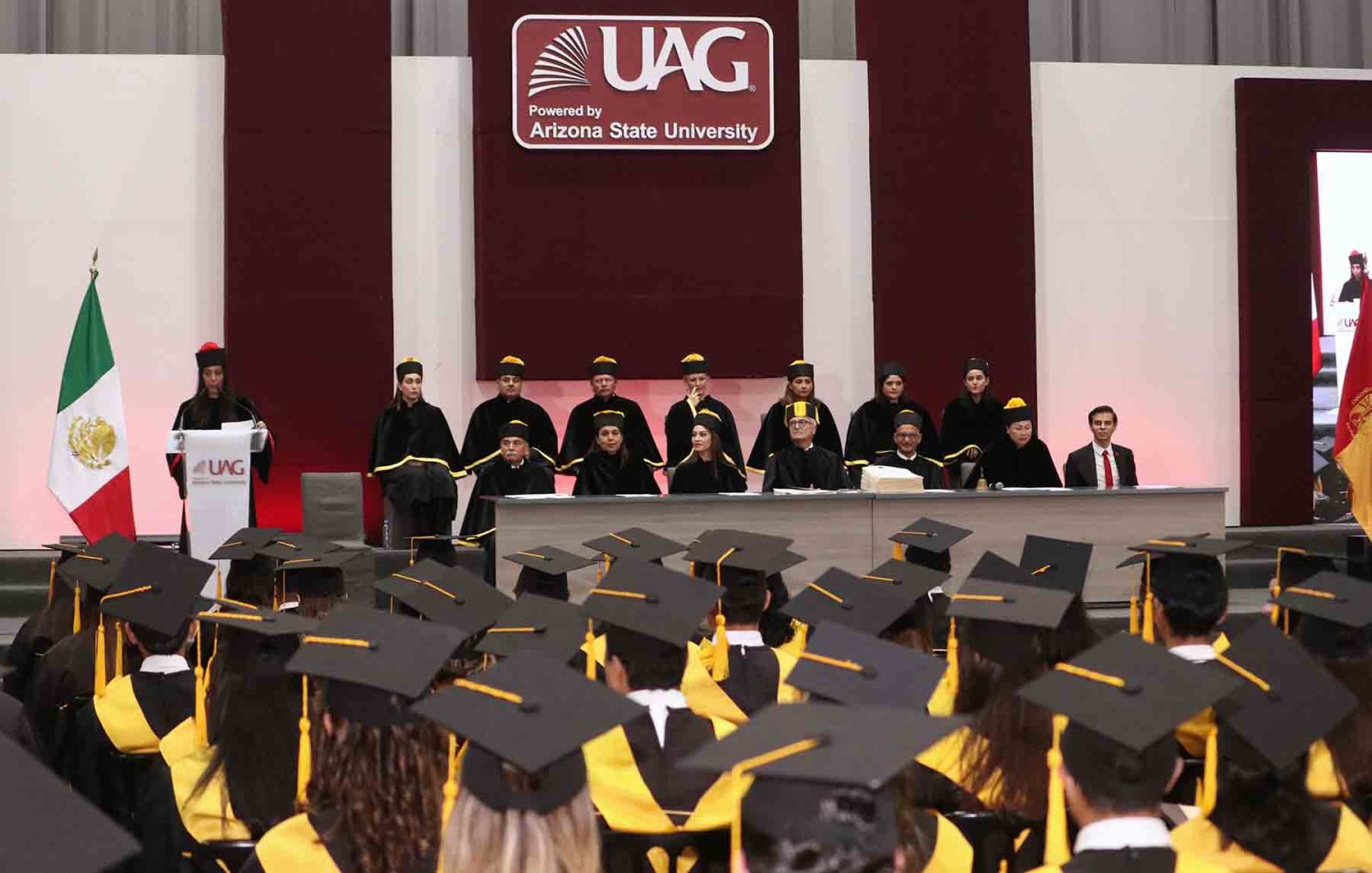 Este acto se realizó en el Gimnasio Universitario de la UAG, dividido en 3 ceremonias diferentes, en las que el Dr. Alfonso Petersen Farah, Vicerrector Académico y de Ciencias de la Salud de la institución, compartió un mensaje a los graduados en el que les pidió servir a la sociedad, cuidarse, ser dignos de su profesión, éticos, profesionales y entregados.