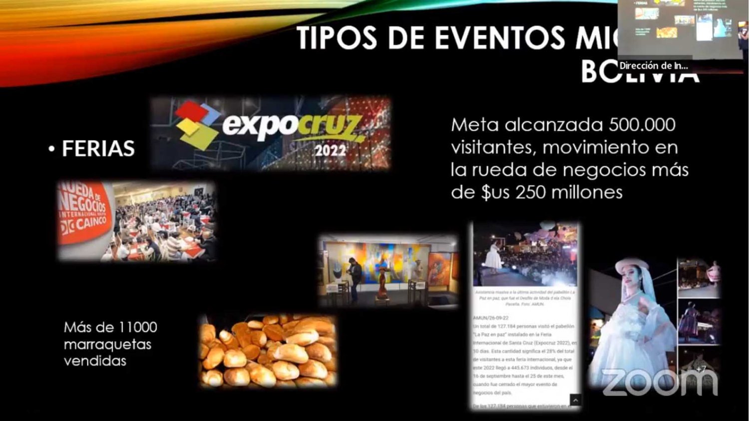 “Es un motivador de recursos económicos. Este tipo de turismo que reporta mayor recuperación económica que el de placer. Genera empleo directo e indirecto y mejora y perfecciona el turismo local”, dijo la experta en este tema la Mtra. Verónica Zambrana, de Bolivia.