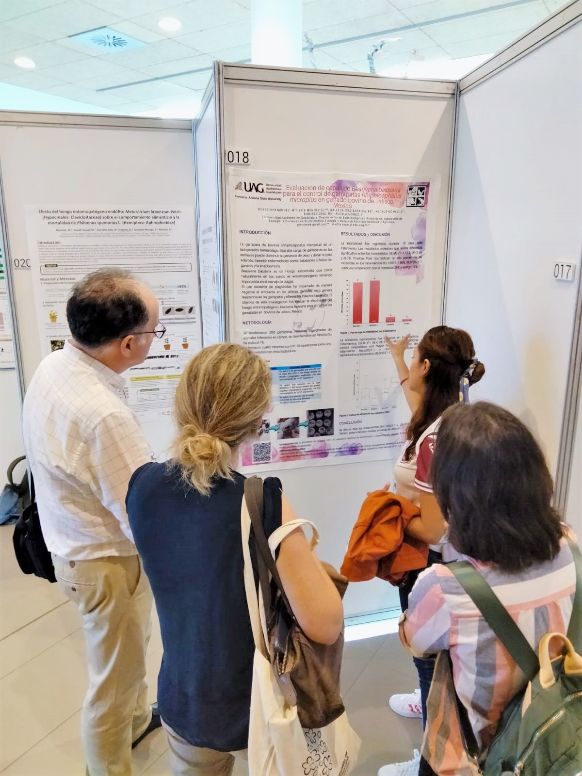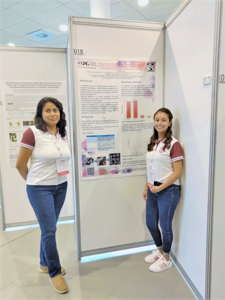 Investigadora y Alumna presentaron el cartel titulado “Evaluación de cepas del hongo Beauveria bassiana para el control de garrapatas (Rhiphicephalus microplus) (Acari: Ixodidae) en ganado bovino de Jalisco, México”.