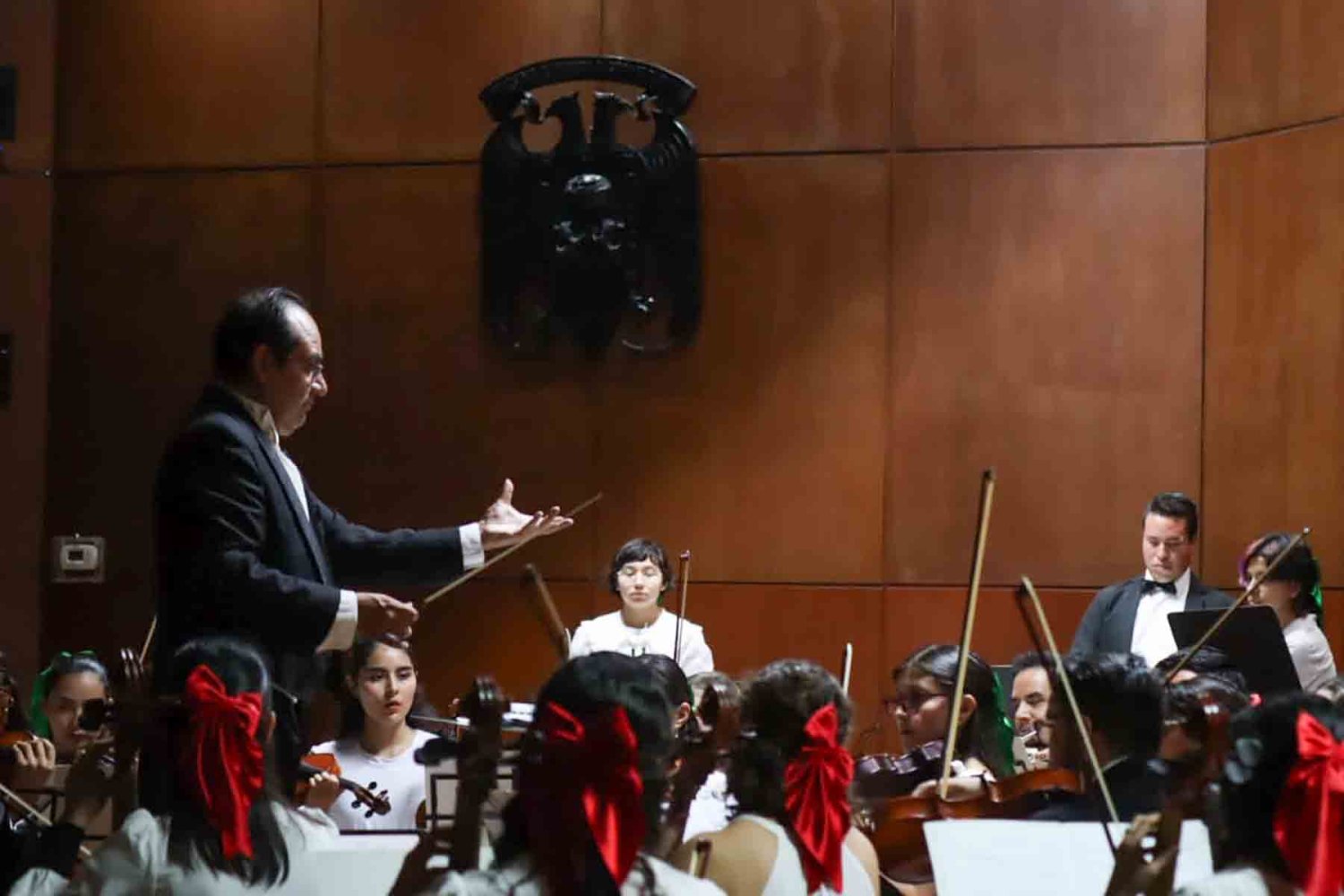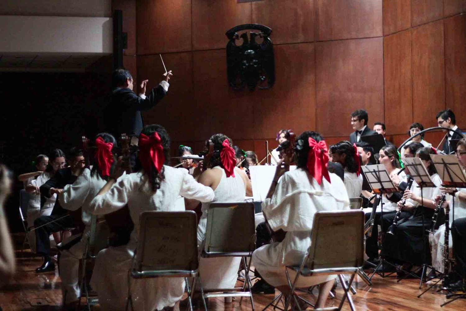 El grupo interpretó piezas icónicas como “Janitzio” de Silvestre Revueltas, “Obertura Caribeña” de Mario Kuri Aldana y “Huapango” de José Pablo Moncayo.