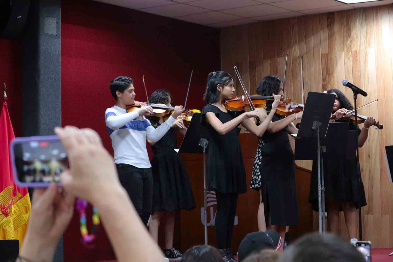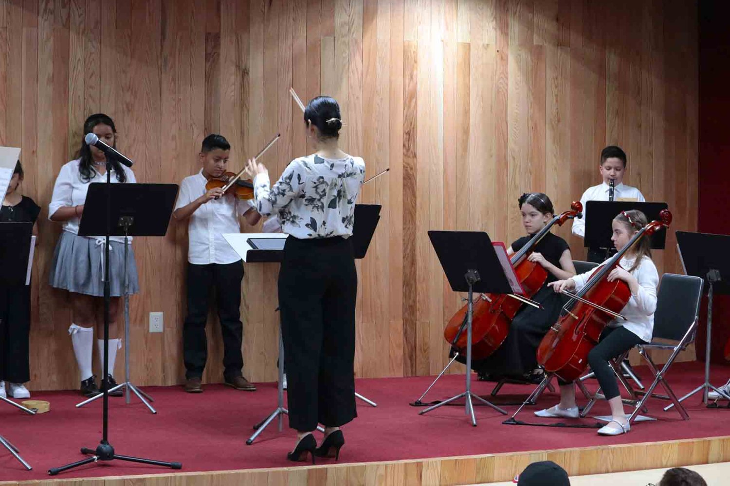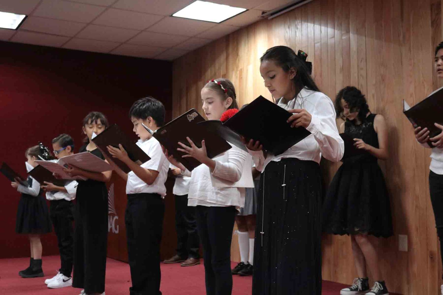 La Orquesta Infantil y el Coro de niños de la Universidad Autónoma de Guadalajara (UAG) interpretó bellas canciones populares en su Concierto de Clausura del Ciclo Infantil de Música 2024, que se celebró en el Aula Hermann Neuburger.
