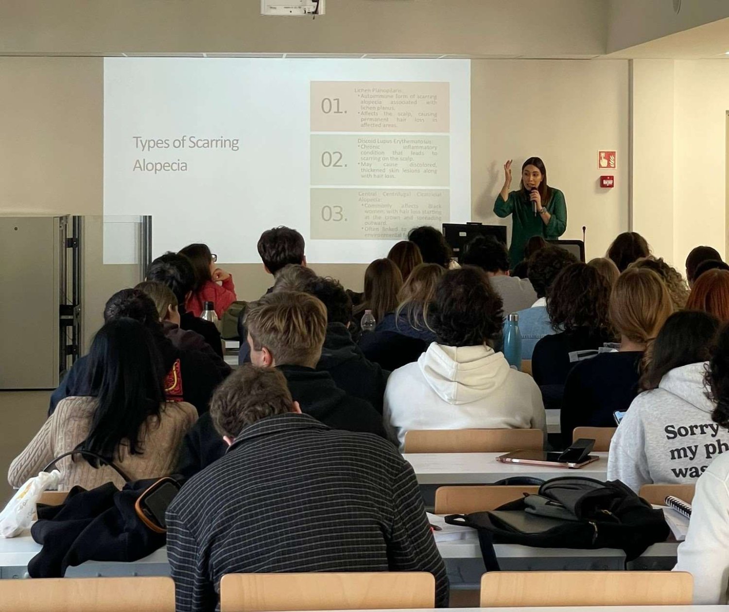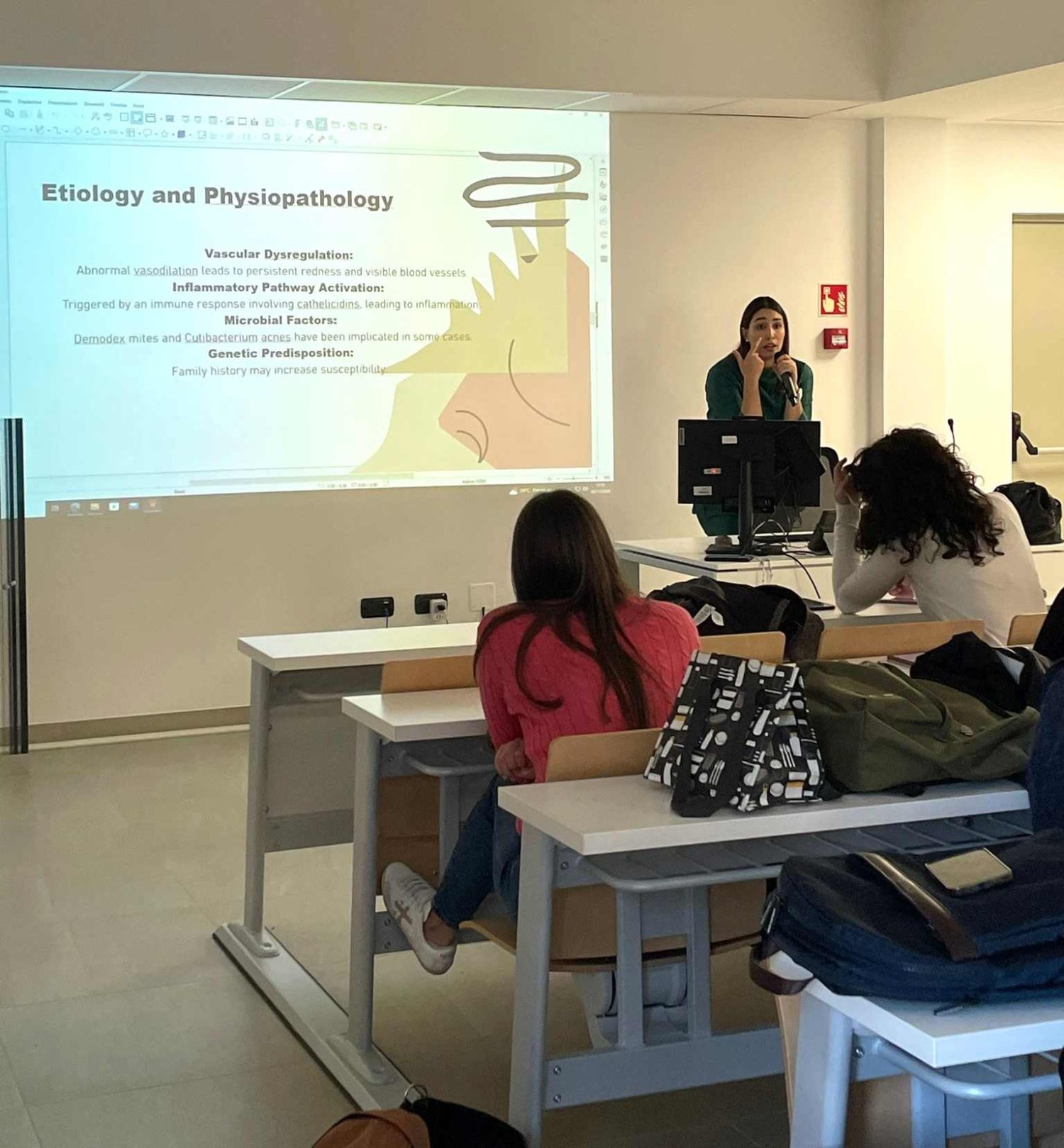 Durante su estancia, la Dra. Orozco Hernández colaboró con la Academia de Dermatología en Italia para alinear los planes de estudio y preparar tópicos afines a los impartidos en la UAG.