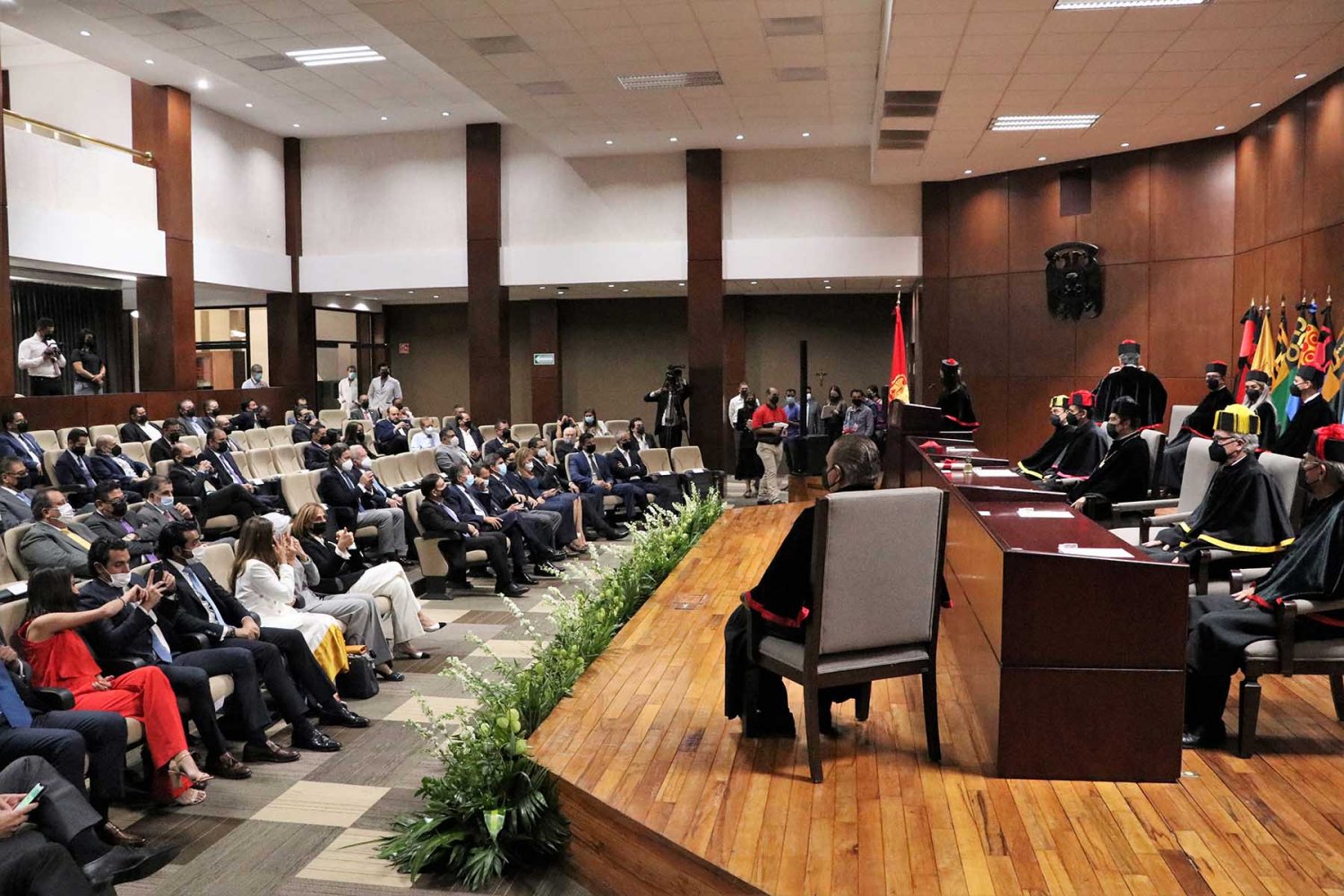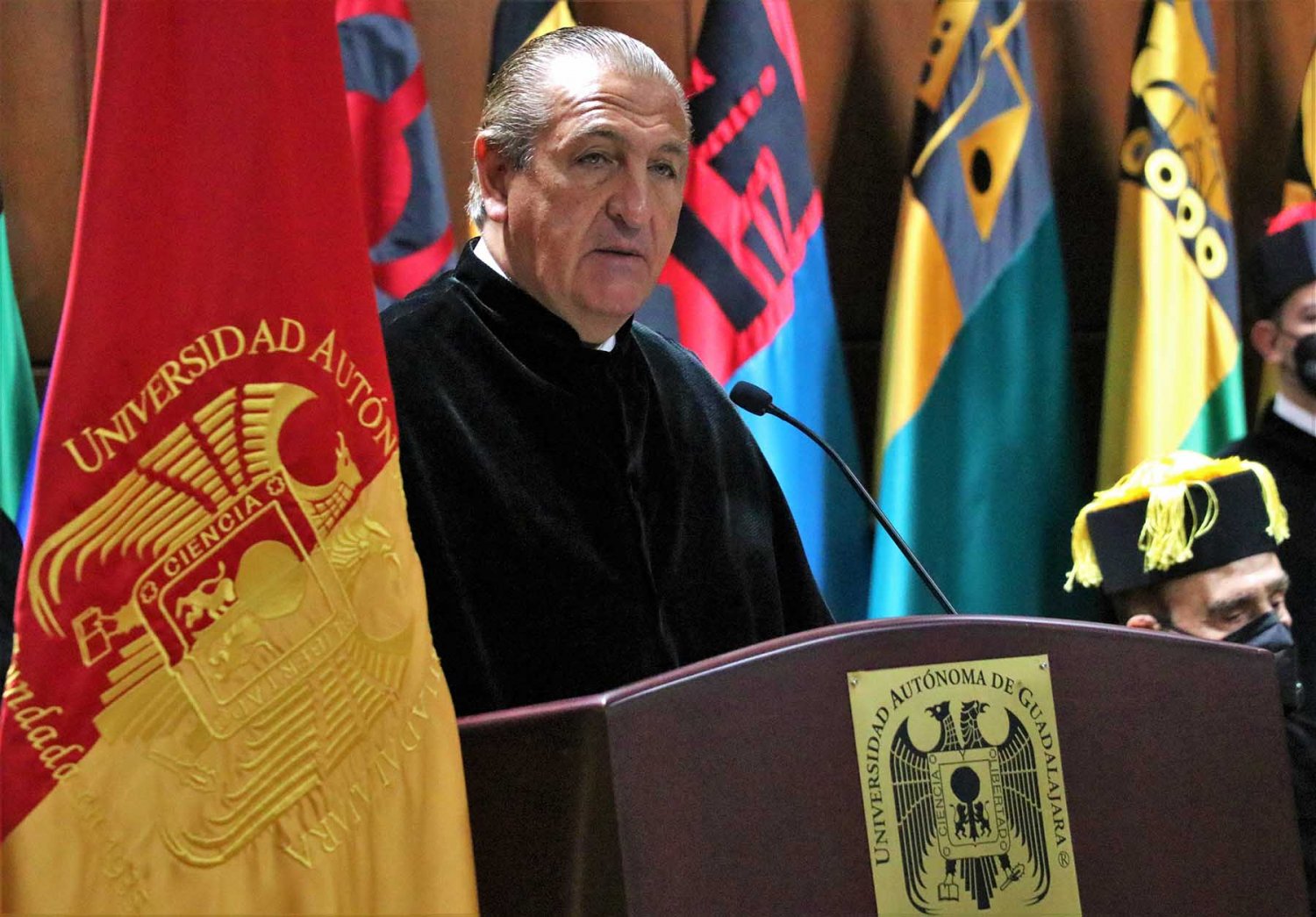 El acto académico se llevó a cabo en el auditorio “Dr. Luis Garibay” de la UAG, con la presencia del Rector, Lic. Antonio Leaño Reyes, autoridades, miembros de la comunidad universitaria e invitados especiales, entre ellos los presidentes municipales de Guadalajara y Zapopan, Pablo Lemus Navarro y Juan José Frangie, respectivamente.