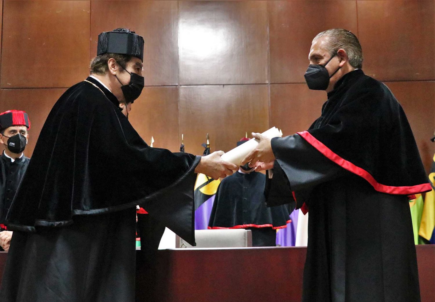 Después de la lectura del trabajo y la contestación, el Rector entregó al Lic. Neme Sastré el pergamino correspondiente que lo acredita como Doctor Honoris Causa de esta Casa de Estudios.