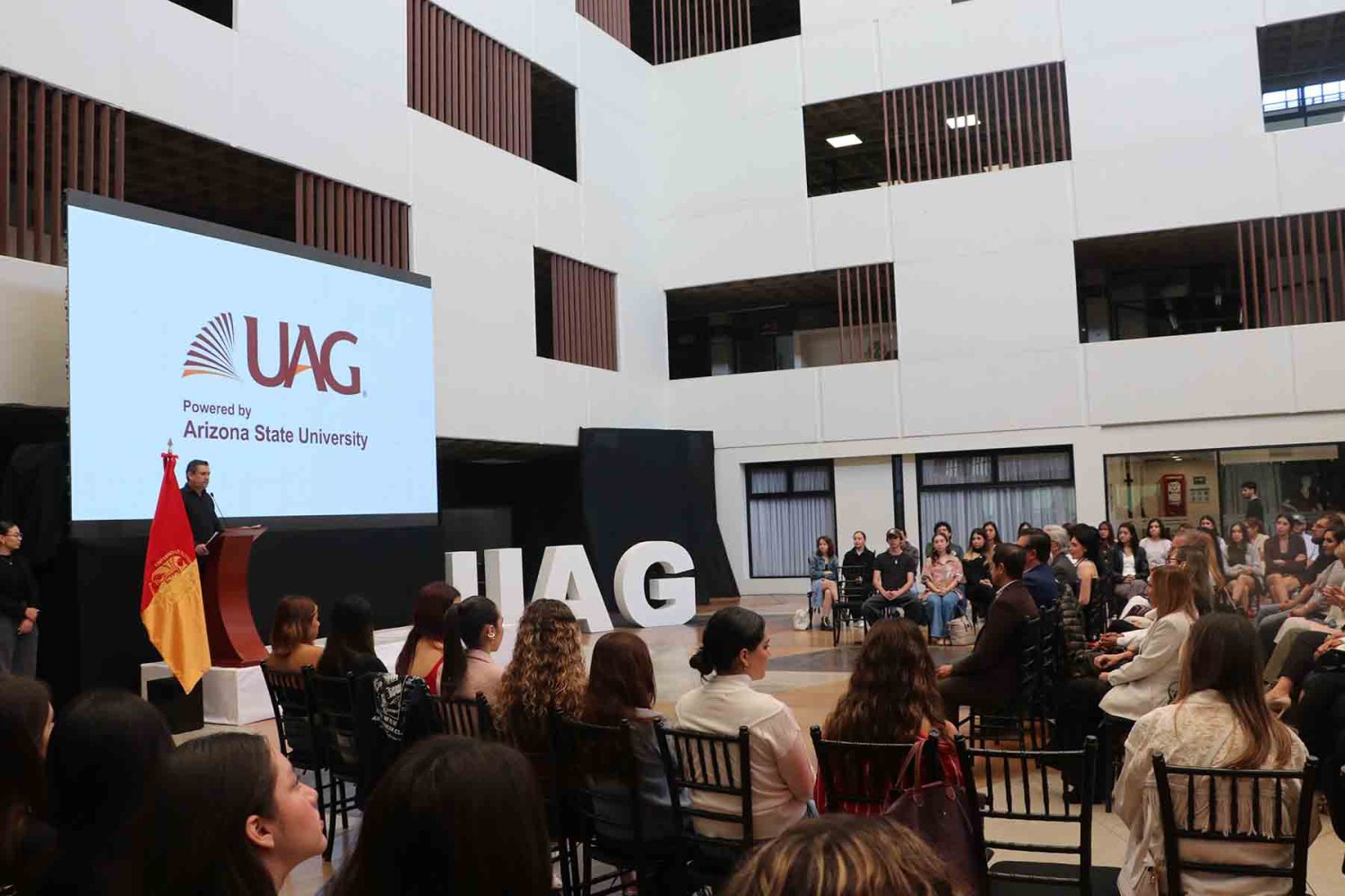 En esta presentación, abierta a estudiantes y al público, Fusoni abordó cómo la industria evoluciona hacia prácticas más sostenibles y colaborativas, resonando con la misión educativa de la UAG.