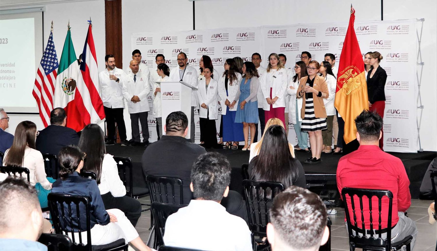 La Universidad Autónoma de Guadalajara (UAG), a través del evento “Orientation Day, 2023-02”, dio la bienvenida a una nueva generación de alumnos de Estados Unidos y Puerto Rico, quienes se incorporan al Programa Internacional de Medicina (PIM).