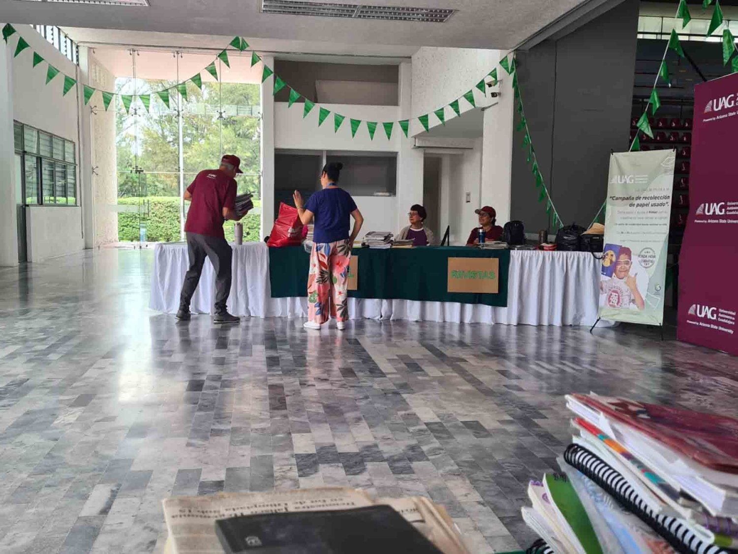 "Vimos en una publicación que el papel también puede ayudar, igual que las tapitas, y decidimos lanzar esta campaña. Muchas veces las mamás se preguntan qué hacer con los cuadernos que ya no sirven; para algunas personas pueden parecer inservibles, pero para otras representan una gran ayuda", comentó Lorena Lugo, Coordinadora de Proyectos de la Dirección de Asistencia Social de la UAG.