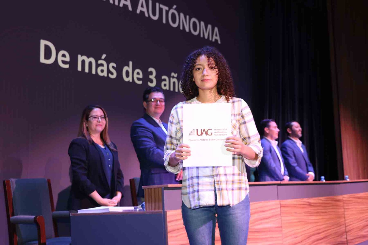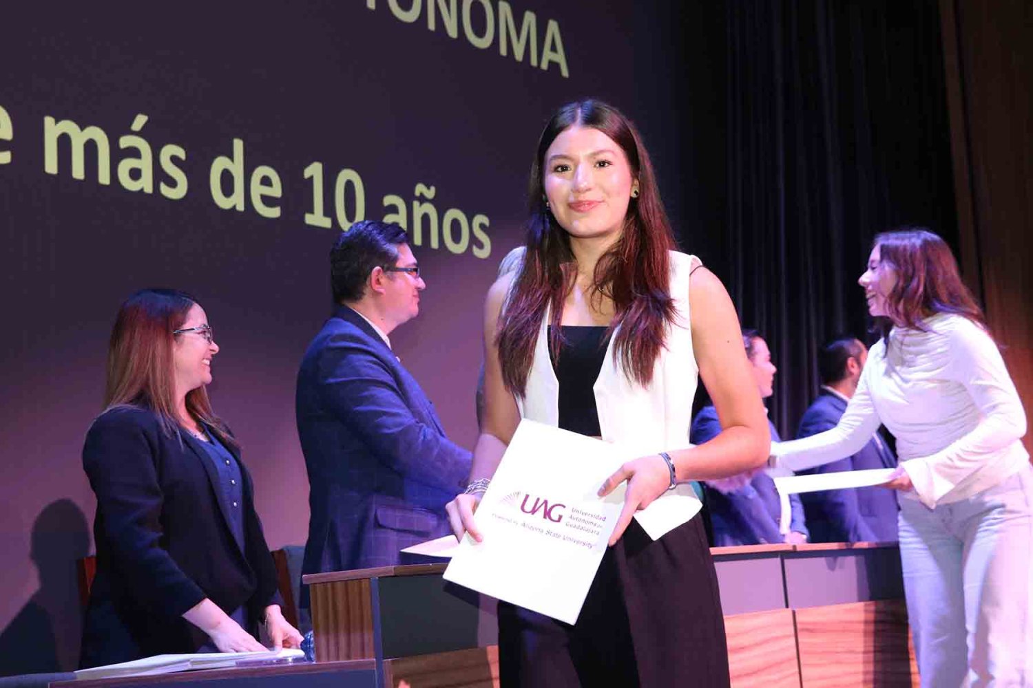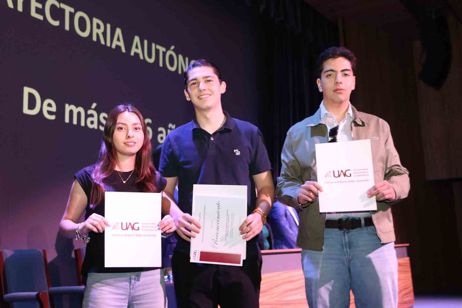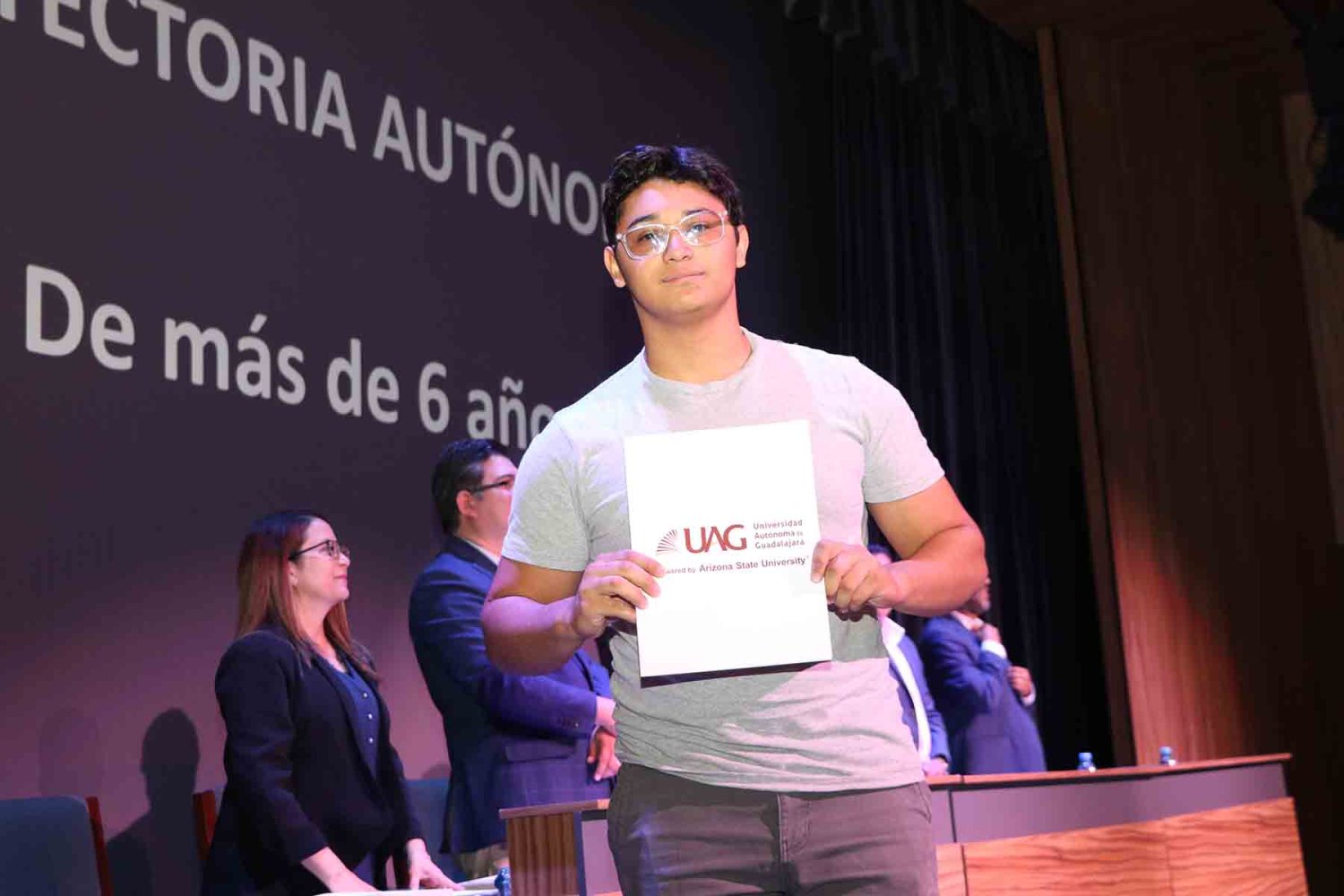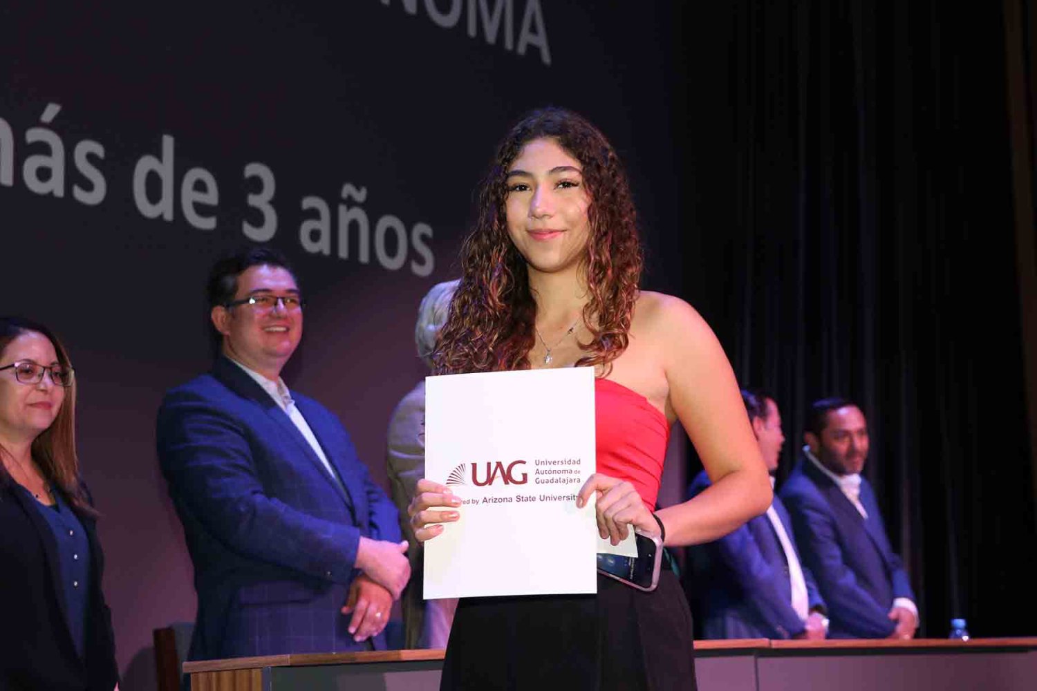 Este reconocimiento se otorgó a los estudiantes por haber cursado alguno de los niveles previos a la educación superior en el Sistema Educativo UAG; además, se les otorgó la Beca Fidelidad, para que continúen con sus estudios universitarios en esta institución.