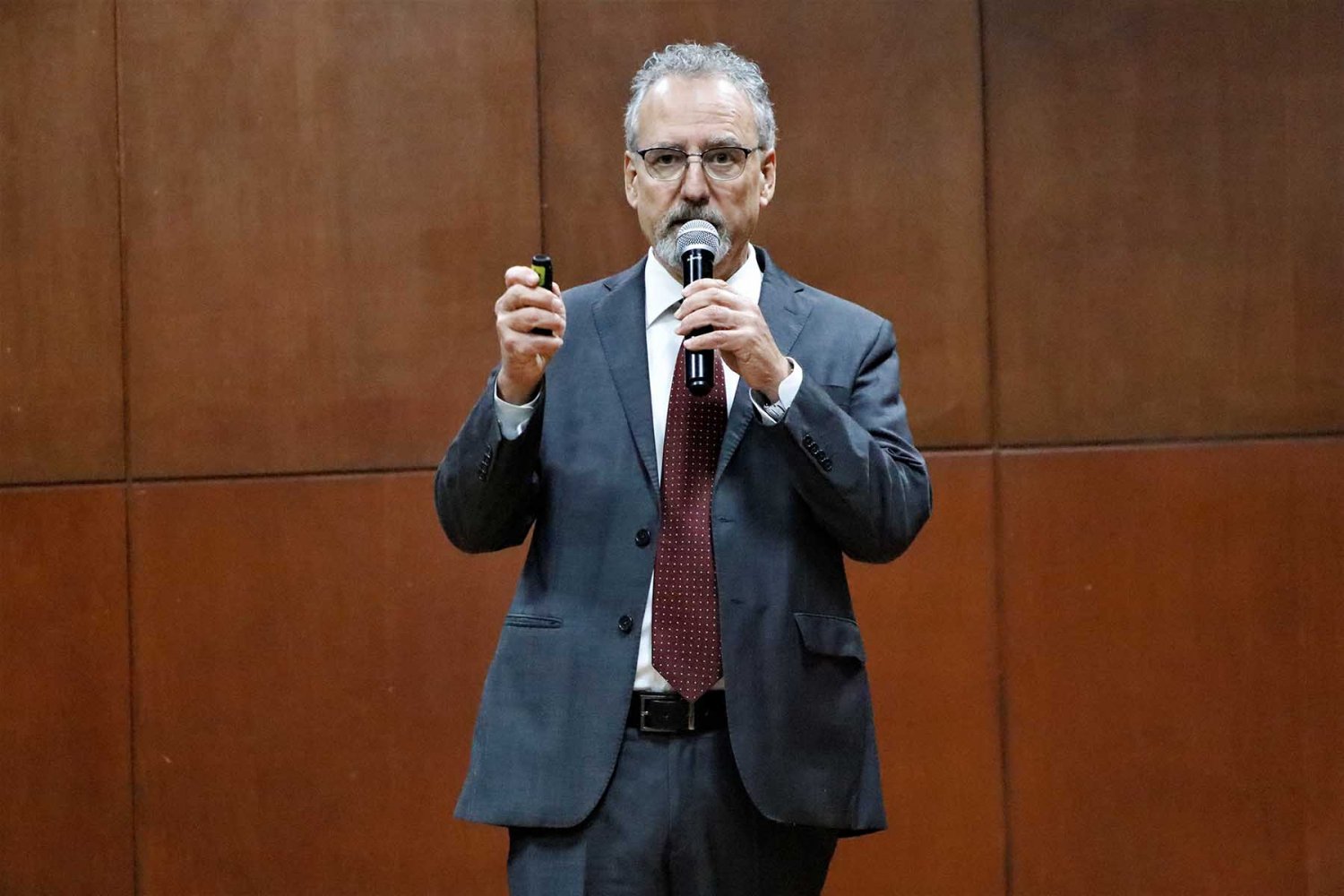 Durante su ponencia, el experto explicó la situación actual del cambio climático, sus afectaciones a la población, la distribución de energía, los cambios en la demanda de energía y las posibles soluciones ante la problemática.