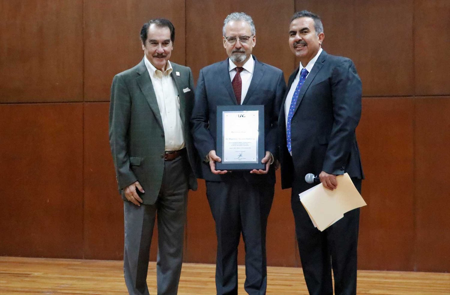 El reconocimiento fue entregado por el Rector de la UAG, el Lic. Antonio Leaño Reyes, en el Auditorio Dr. Luis Garibay Gutiérrez de esta institución académica.