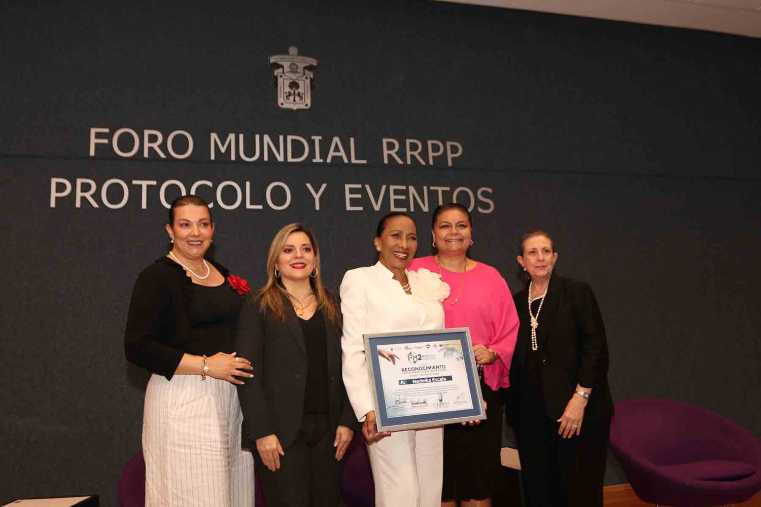 La Señora Nedelka Escala, y otras personalidades del gremio, recibió el reconocimiento en el cierre del “2do Foro Mundial de Relaciones Públicas, Protocolo y Eventos”, organizado por la