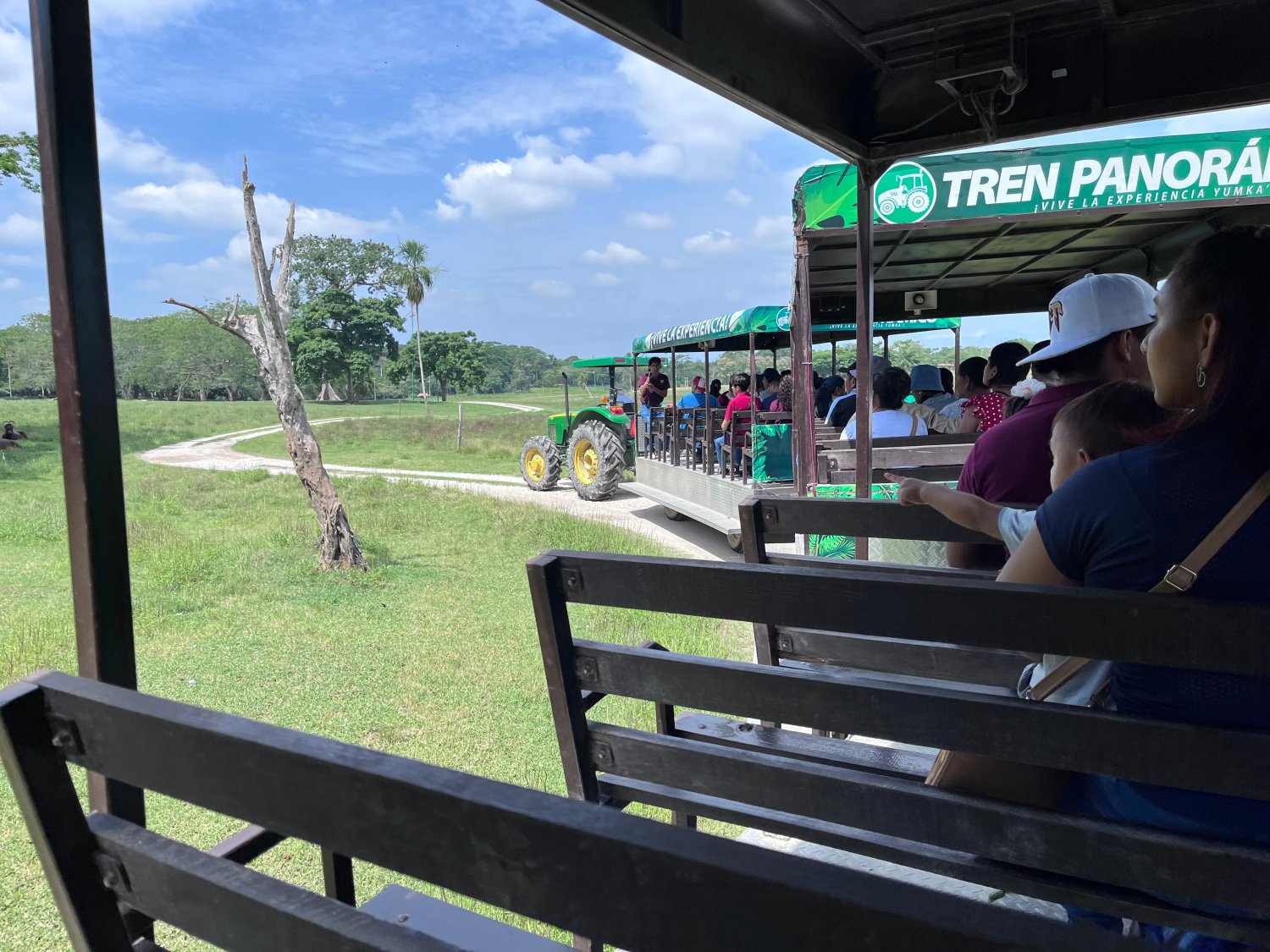 Sabana: Aquí, los visitantes avanzan en uno de los transportes adaptados especialmente por el YUMKÁ para el recorrido por esta vereda. Dentro de la misma, podemos encontrar una zona tropical llena de fauna de diversas especies, que incluye jirafas, cebras, elefantes, venados cola blanca, entre otros. Lo más destacado en esta etapa es el acercamiento que se puede tener con estos seres vivos.