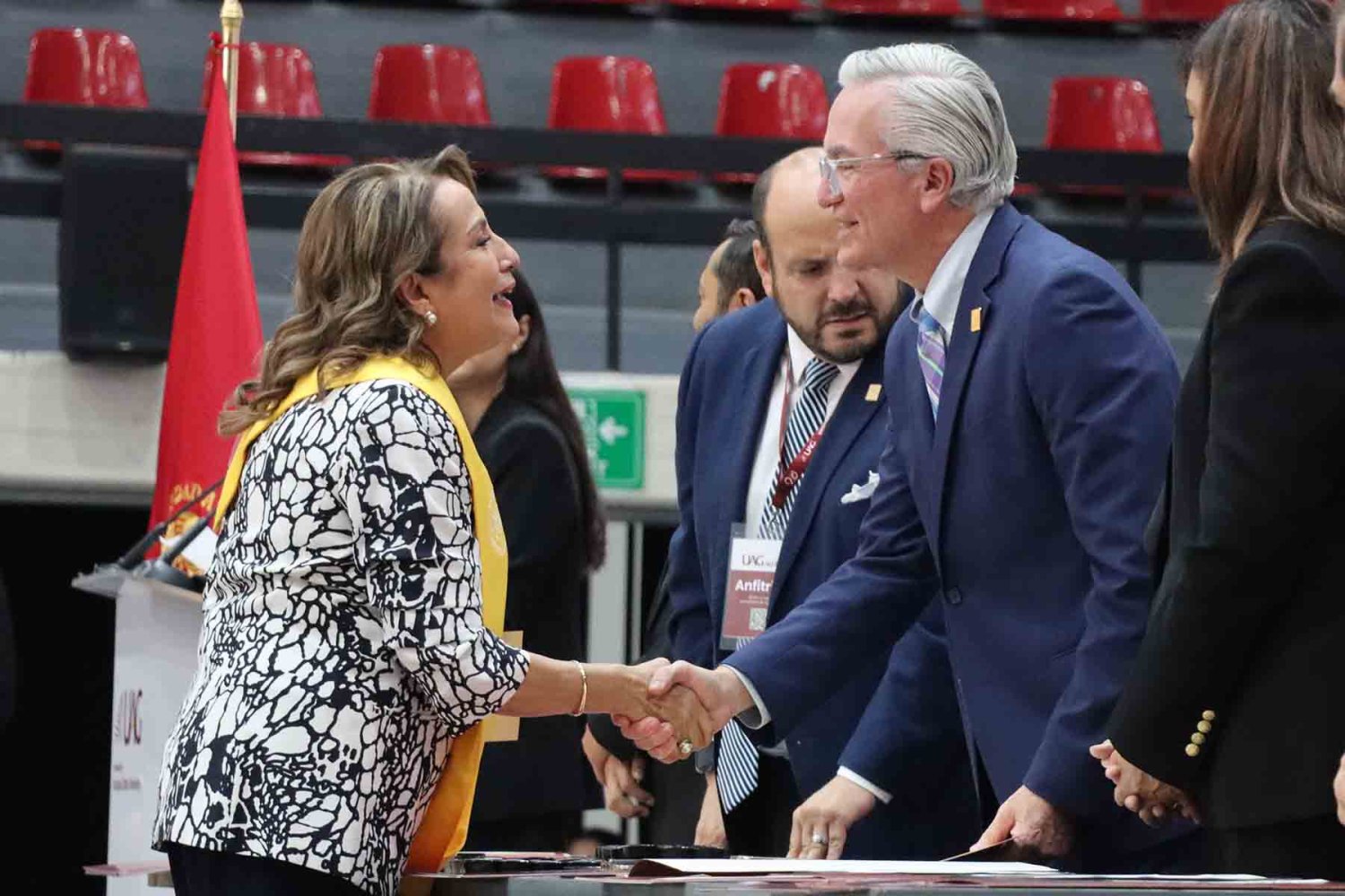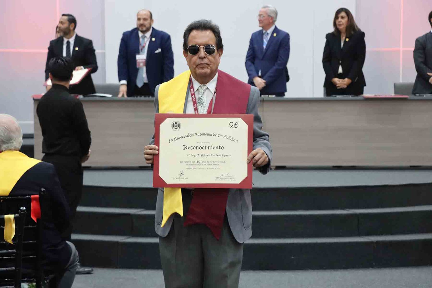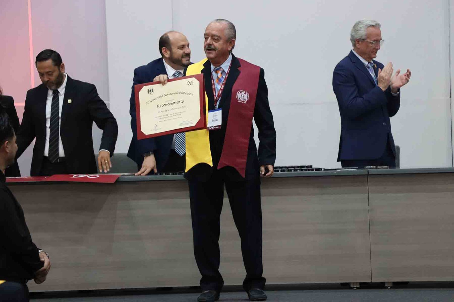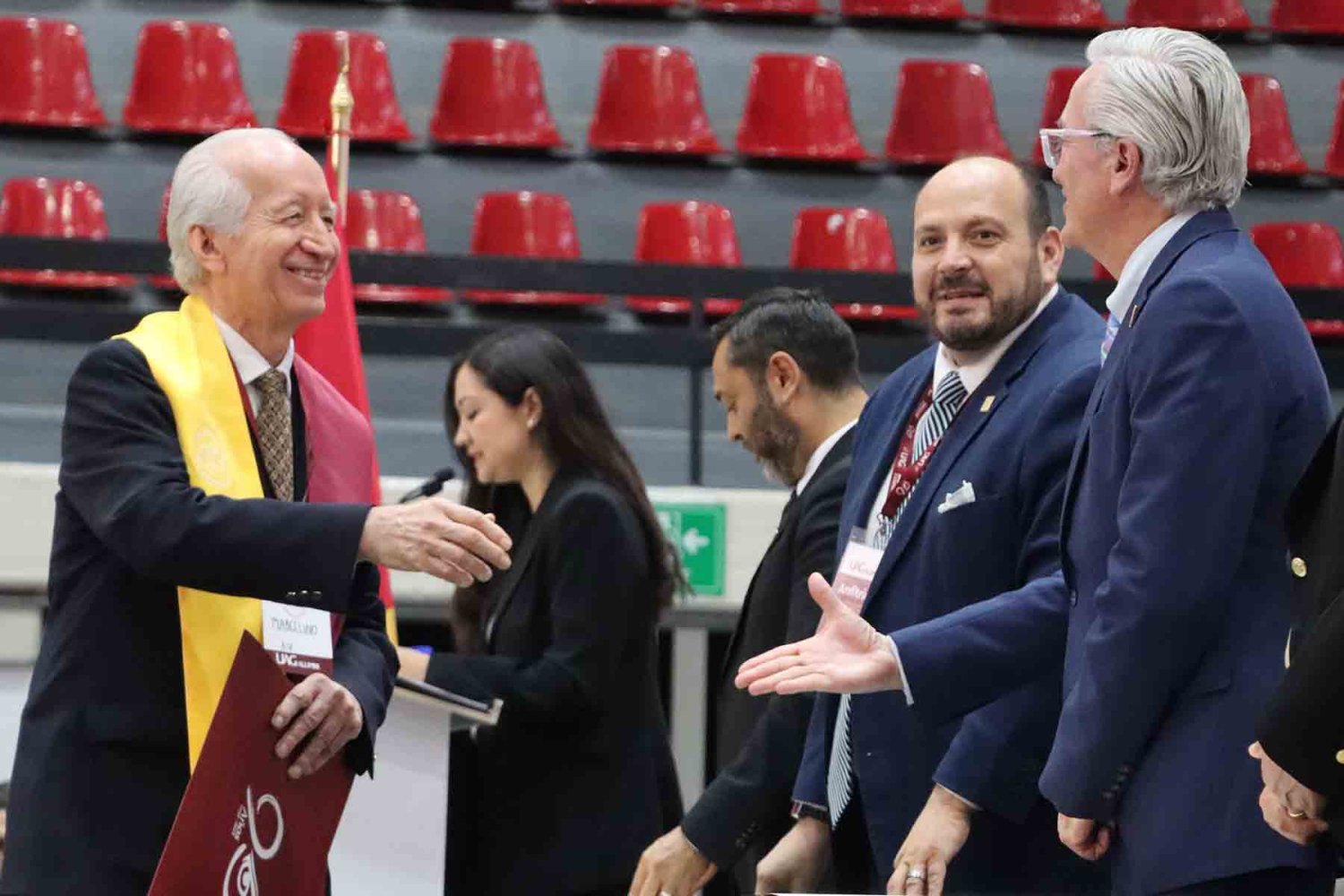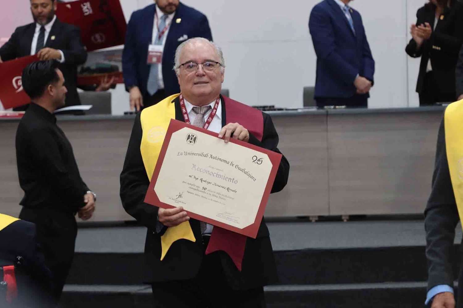 El Dr. Petersen destacó que la UAG ha sido testigo de profundas transformaciones desde su fundación, pasando de sus primeras aulas en el centro de Guadalajara hasta el desarrollo de Ciudad Universitaria, consolidándose como una institución de excelencia reconocida a nivel nacional e internacional.