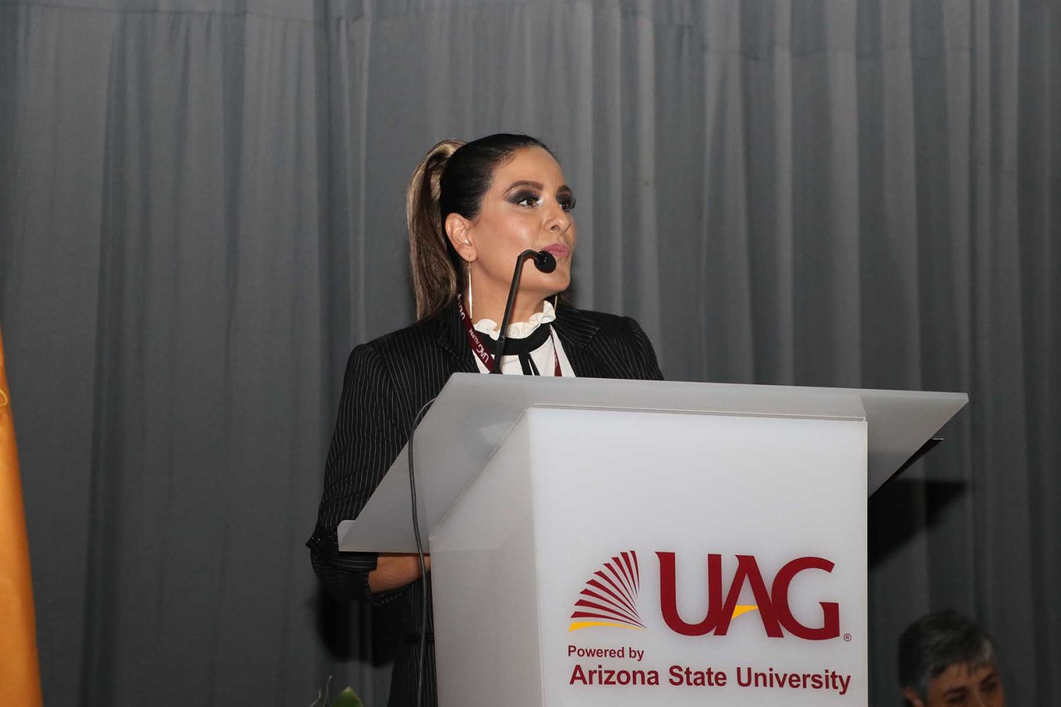 A nombre de los egresados de 25 años, la Dra. Gabriela Charles Rodríguez dijo que la UAG siempre los recibe con los brazos abiertos y siempre son bienvenidos y los invitó a recordar ese primer día de clases, la emoción que corría y el hoy mirar los lazos de hermandad que se consolidaron en todo este tiempo.